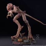 Pumpkinhead himself is expertly traditionally sculpted by Casey Love in spectacular detail from head to toe. This massive monster boasts lifelike textures and incredibly screen accurate proportions. The paint work, also by Casey Love, embellishes the beautiful detail of the sculpt from the terrifyingly realistic teeth and claws to the eerie mottled color of his skin. His creepy prowling pose emphasizes the disturbingly exaggerated proportions of this beloved movie monster.