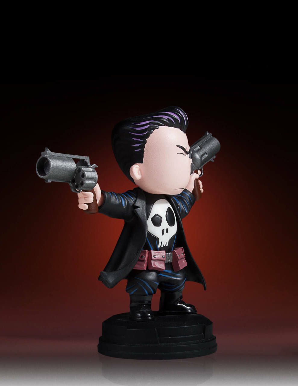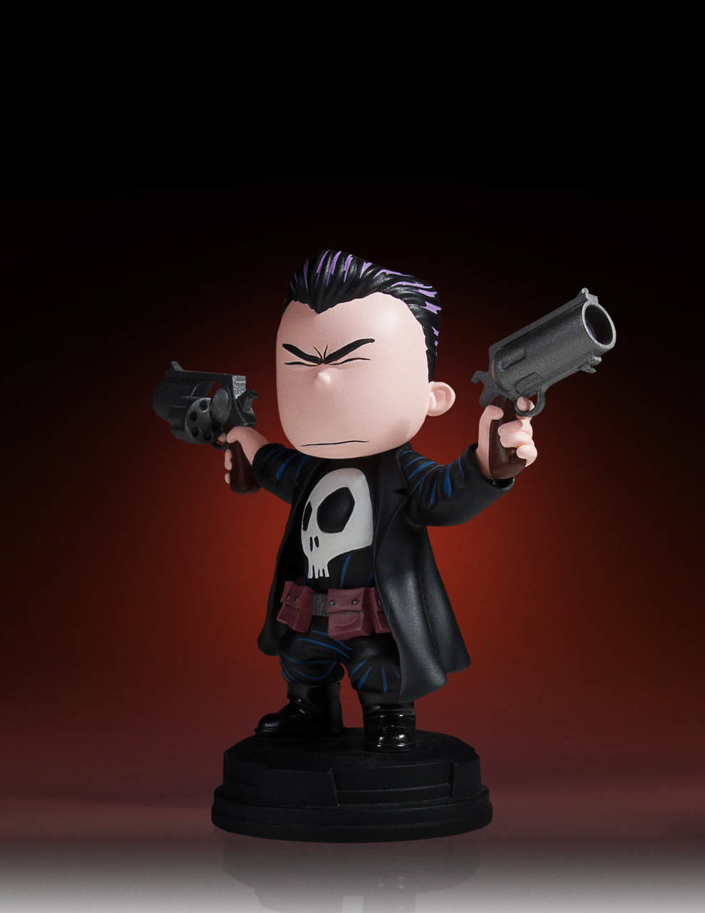 Frank Castle is easily one of the most hard core, violent, dangerous vigilante characters of the Marvel Universe. But, THIS version of Frank is easily the cutest! The Punisher stands, pistols drawn and (somewhat) at the ready, determined to bring swift justice to any evil that would cross his path. The Animated Punisher Statue was digitally sculpted, and then 3D printed on state of the art 3D Systems printers. The high-resolution prints were then used in the creation of prototypes needed to produce this animated collectible. Each animated statue is hand-cast, hand-painted, and hand-numbered with a limited edition certificate of authenticity. Make Mine Marvel!