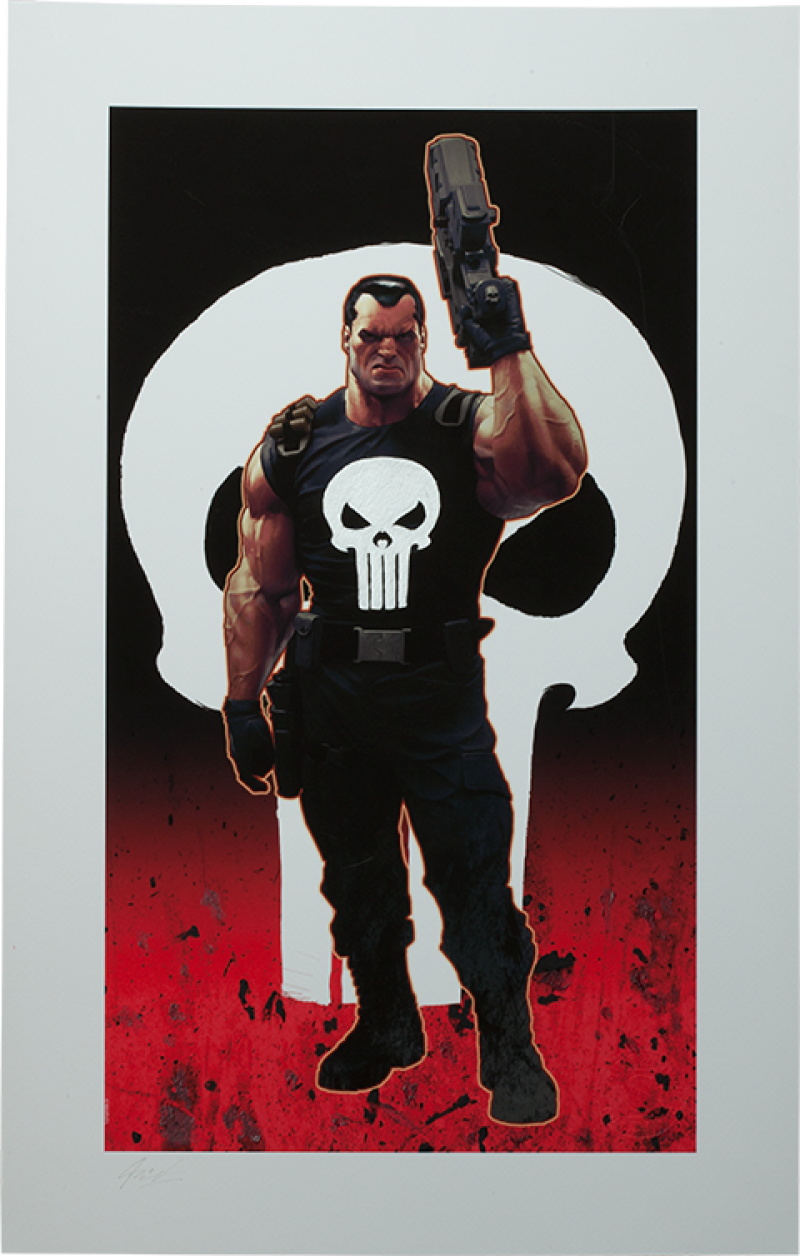 This 15.25×24 hand-numbered, limited edition gallery art print features An authorized, automated penciled signature, metallic skull logo, spot gloss effects, and embossed seal of authenticity.
