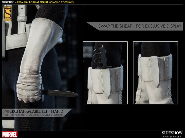 Sideshow Collectibles is proud to present the Punisher Premium Format Figure. Frank Castle comes ready to wage his relentless one-man war on crime, in his traditional classic costume. Marvel Comics’ vigilante ‘anti-hero’ is armed for vengeance with a fully automatic shotgun and holstered pistol. He wears a set of brass knuckles for close quarters combat, and in a bind, there’s a concealed trench blade strapped to his boot. The Punisher Premium Format figure is an outstanding addition to any Marvel collection.