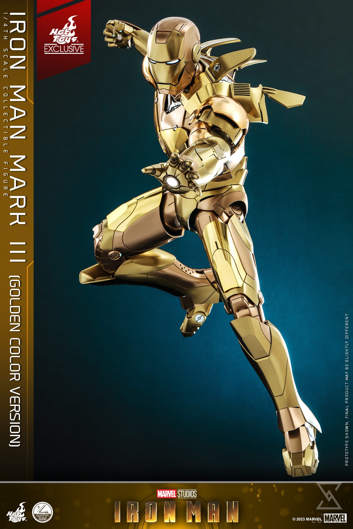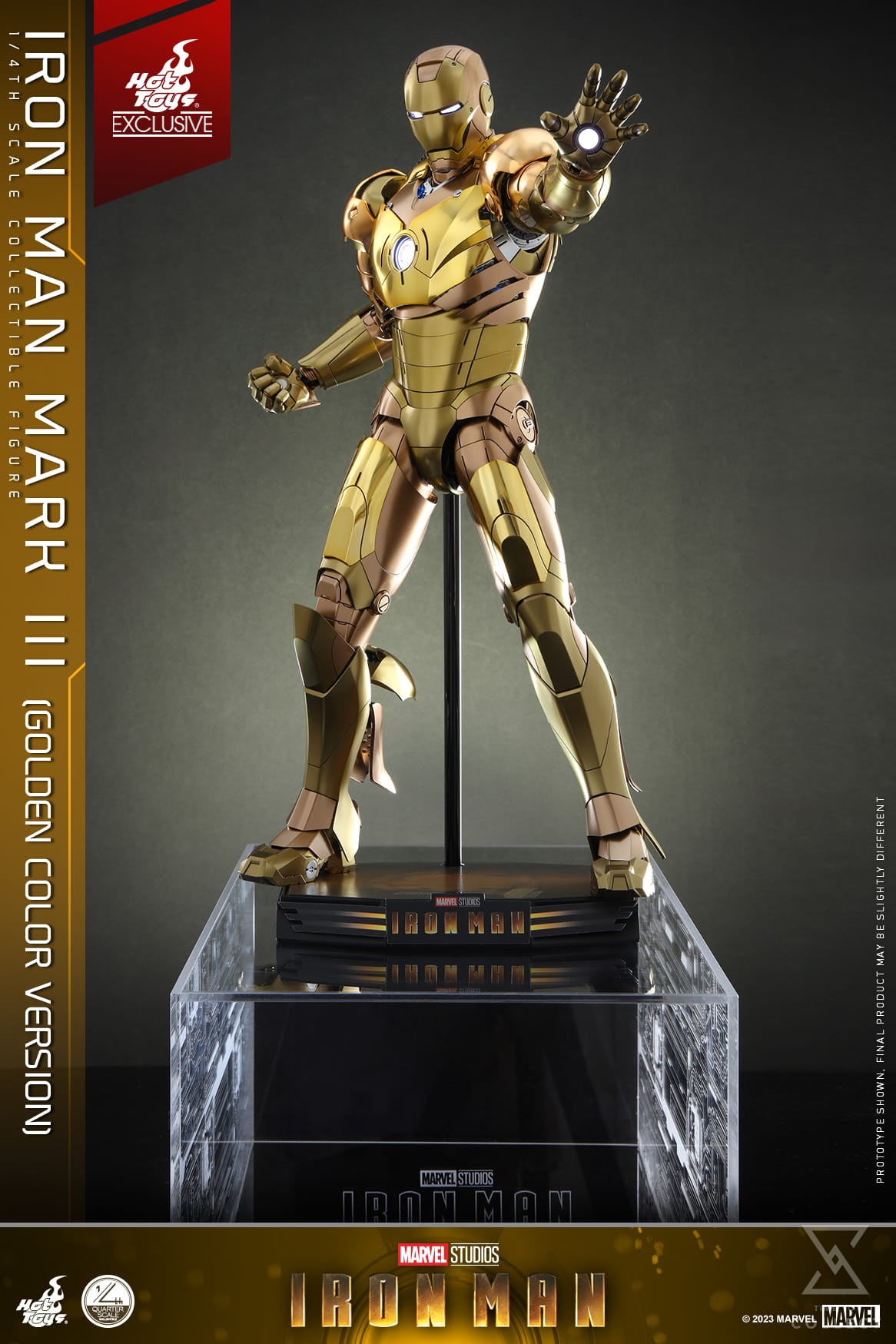 The 1/4th scale Iron Man Mark III (Golden Color Version) Collectible Figure specially features: