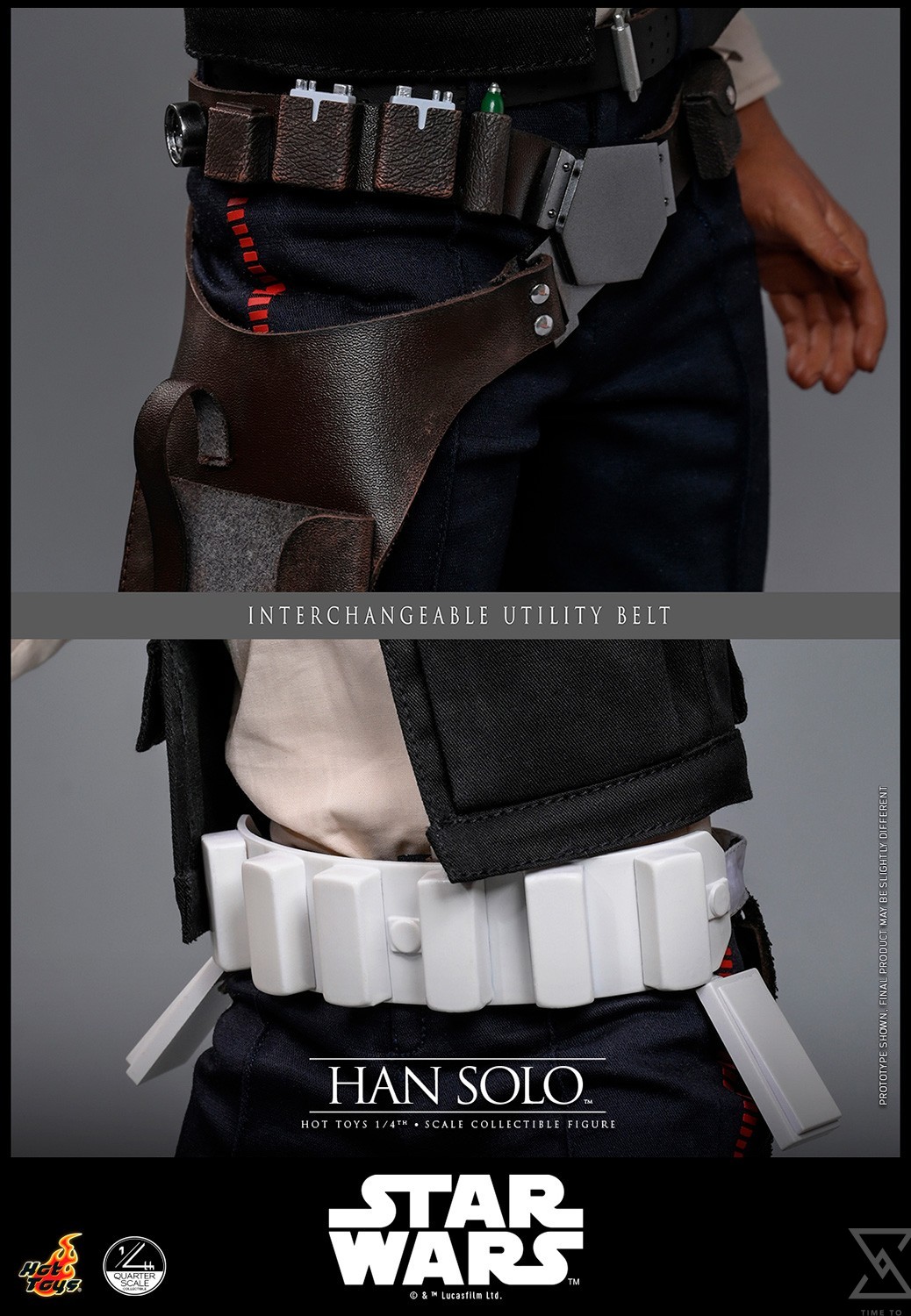 Sideshow and Hot Toys proudly presents the Han Solo™ Quarter Scale Collectible Figure, capturing Harrison Ford’s portrayal with remarkable realism. This quarter-scale figure features a newly developed head sculpt with separate rolling eyeballs, detailed scar, and lifelike skin texture. His brown short hairstyle is meticulously sculpted to reflect his classic look from A New Hope. Standing approximately 45.5cm tall, the newly developed body allows collectors to recreate Han’s signature swagger or blaster-ready stances. An extensive selection of interchangeable hands, including four normal hands, three gloved hands, as well as six hands with forearms, provides versatile display possibilities straight out of the Mos Eisley Cantina or into the heat of battle.