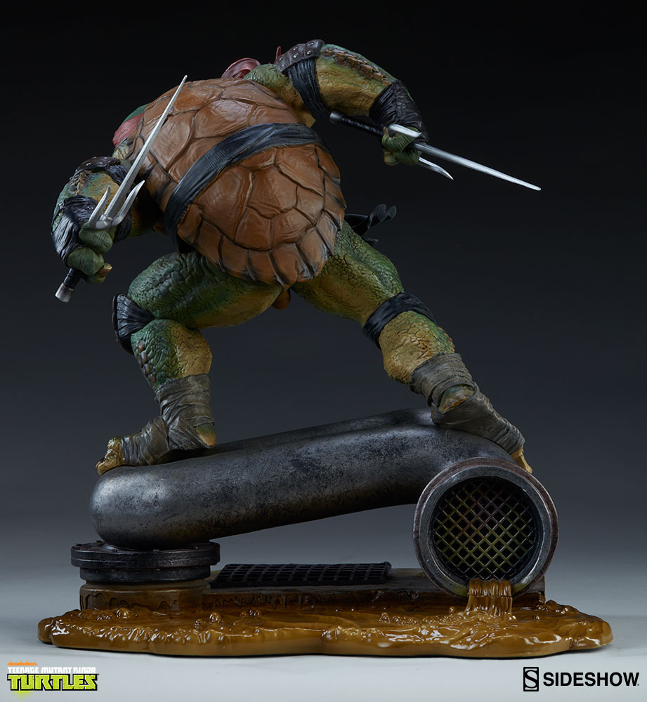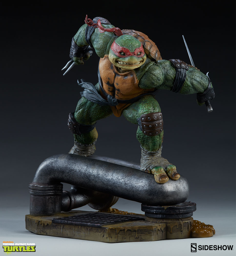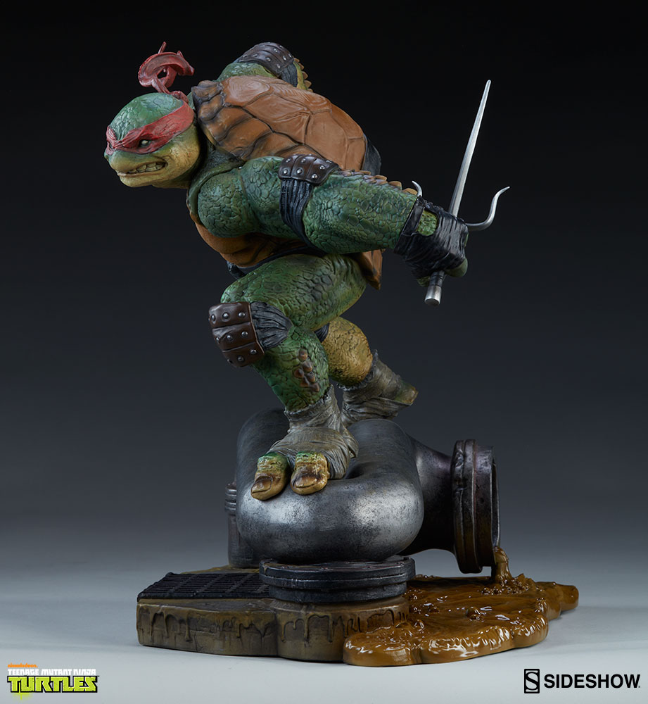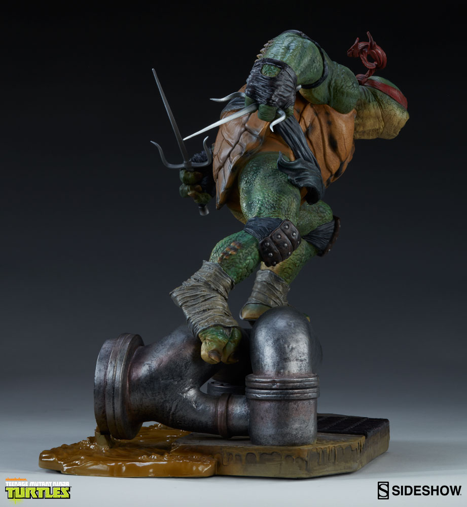 Ready to be paired with his brothers, Raphael’s sewer themed base has been built to sit within close proximity to Sideshow’s other Teenage Mutant Ninja Turtles.