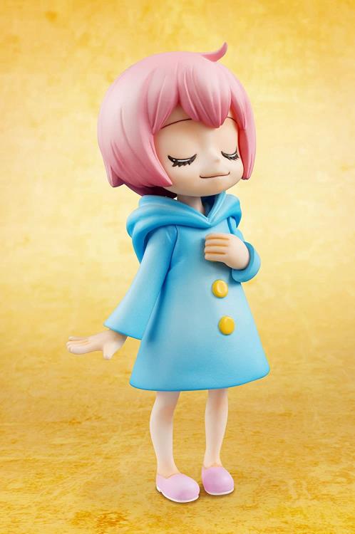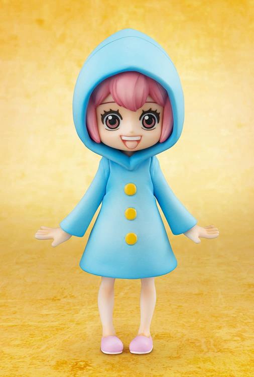 This MegaHouse Portrait of Pirates Excellent Model figure features Rebecca from the anime series One Piece. This non-scale figure stands approximately 3.7 inches tall and includes two alternate expressions.