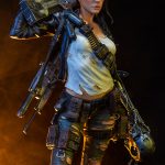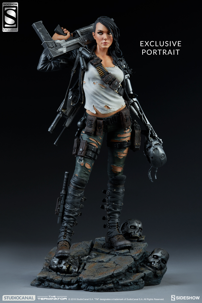 The resin Rebel Terminator – Mythos Premium Format™ Figure features an incredibly detailed sculpted costume, consisting of a black jacket, white undershirt, green pants, and combat boots. Her rugged look is textured with tatters and tears to reflect the raging battle against the oppressive forces of Skynet.