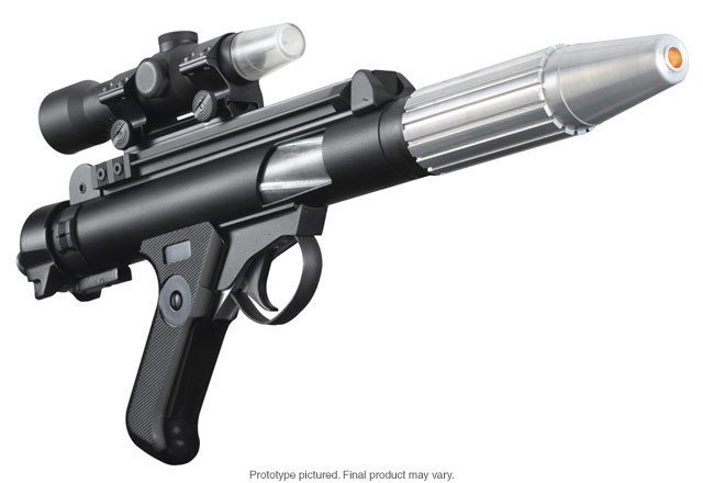 Fiercely defending the cause of freedom and individualism, the courageous men and women of the Rebel Alliance would lay down their lives to protect Princess Leia and her starship. In the opening scene of Star Wars: A New Hope, Rebel troopers do just that—wielding their blaster pistols in a desperate attempt to fight off the faceless enemy Stormtroopers who overrun Leia Organa’s starship. The Rebel blaster was the first Star Wars weapon to appear on-screen and was modeled after a 1950’s British submachine gun (also the model for the Stormtrooper blaster). Like all blaster pistols in the Star Wars trilogy, it fired bursts of searing light-based energy called bolts. |