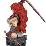 Sometimes, mercenary work is a bloody job, but the She-Devil with a Sword is just the warrior to do it! This rare collectible bust, a limited edition variant in Dynamite’s line of busts inspired by the artwork of comic book master Art Adams, gives a violent alternate take on the cover image to the landmark Red Sonja #50! Sculpted by Jason Smith, this poly-resin bust has cast metal details and stands approximately 7 1/2-inches tall (to the top of the She-Devil’s sword hand), with a base measuring 3-inches tall x 5 1/2-inches wide. Packaged in a four-color display box, this highly-detailed Red Sonja Bust celebrates one of the industry’s finest artists, and one of fantasy’s most iconic women! Limited edition of only 299 busts.