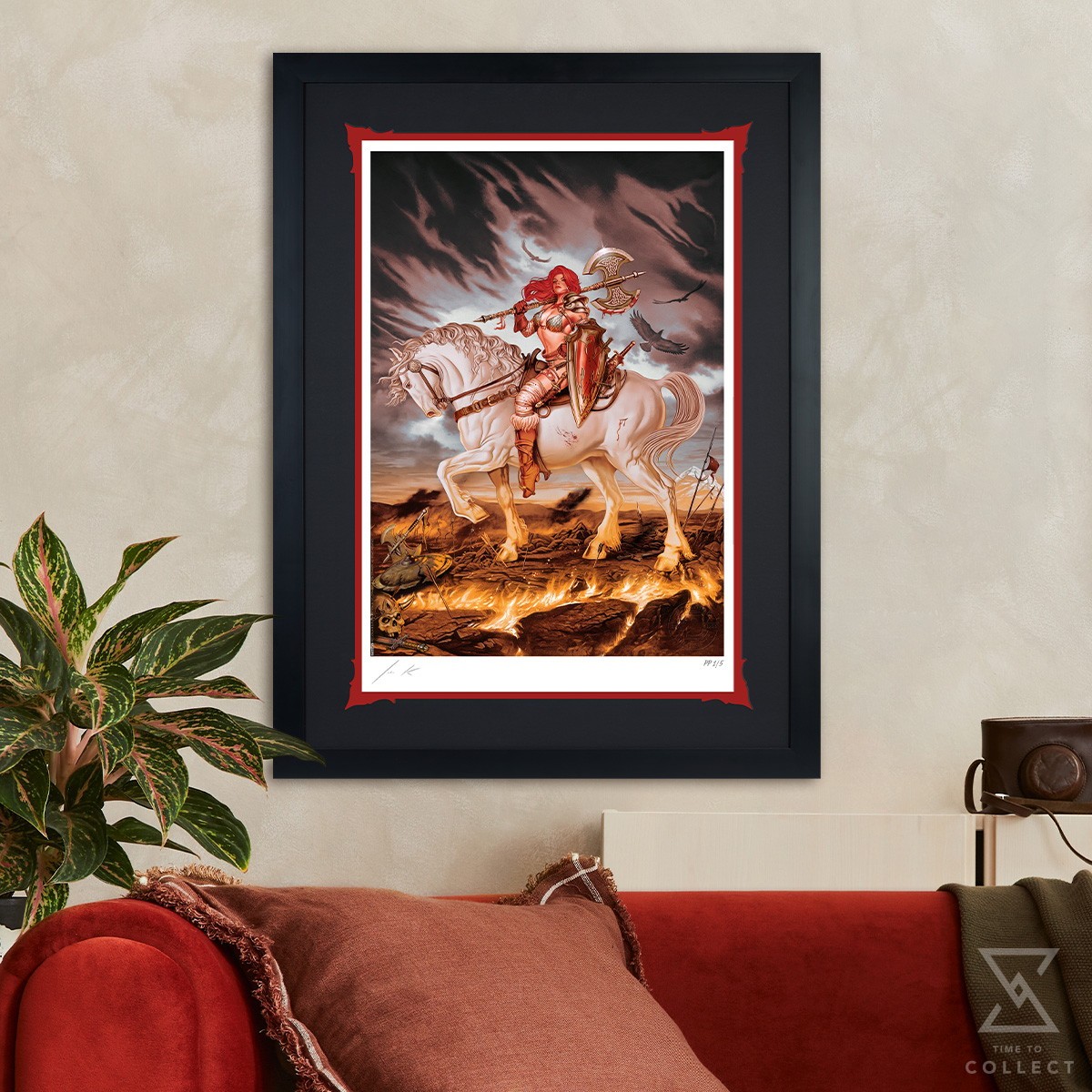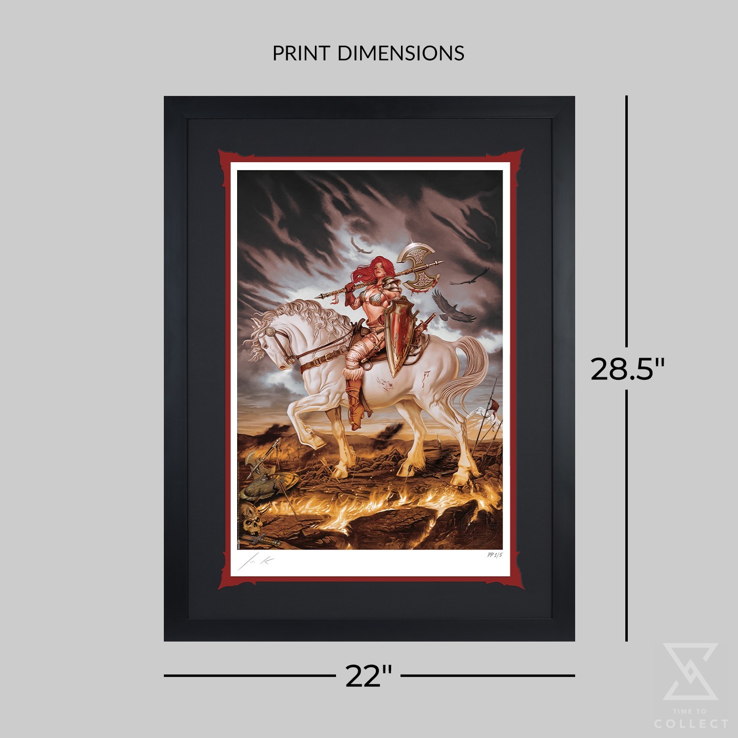 Conquer your collection when you bring home the Red Sonja: World on Fire Fine Art Print by John Keaveney today!