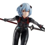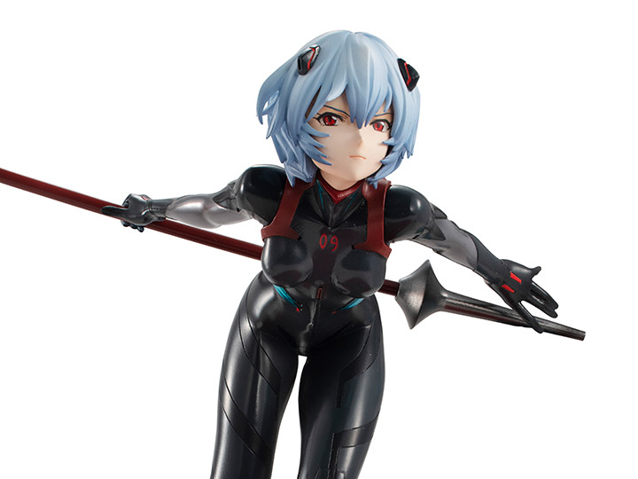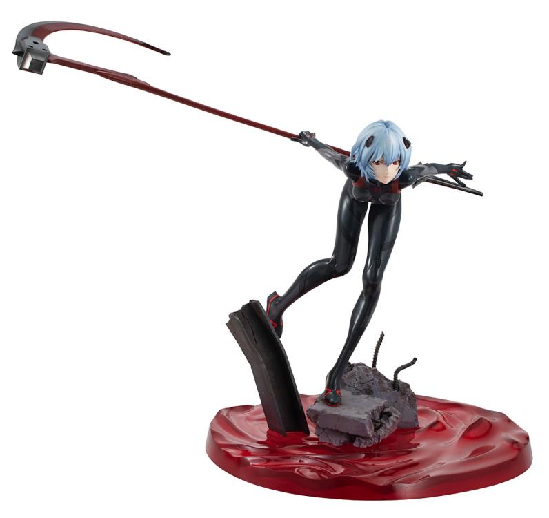 From the Rebuild of Evangelion film series, the G.E.M. series welcomes a figure of Rei Ayanami! Rei is sculpted rushing across debris with her scythe in hand.