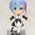 A Kotobukiya Japanese import! The next adorable Cu-Poche figure from Kotobukiya comes from an alternate world where a young man transported from our Earth rewinds time after dying in the hit franchise Re:ZERO -Starting Life in Another World-. Shrunk down to an adorable size is one of a pair of demon maids working for Roswaal known as REM, and she’s perfect as a poseable and fun Cu-Poche figure featuring multiple points of articulation and magnets in her feet for extra stability on her included base. The better cook of the two sisters, Rem wears a cute black and white maid’s outfit complete with white stockings, chunky black shoes, a fringed apron, and a black bowtie. She also wears decorative elements in her hair with pink ties, and you can further customize her appearance with included accessories and alternate parts like a fancy tea set and multiple facial expression parts. Sculpted by Naoki Nishimura (pilot), Rem stands just over 4 ½ inches tall and has multiple points of articulation for a high degree of poseability. Bring home this little demon maid to take care of you!