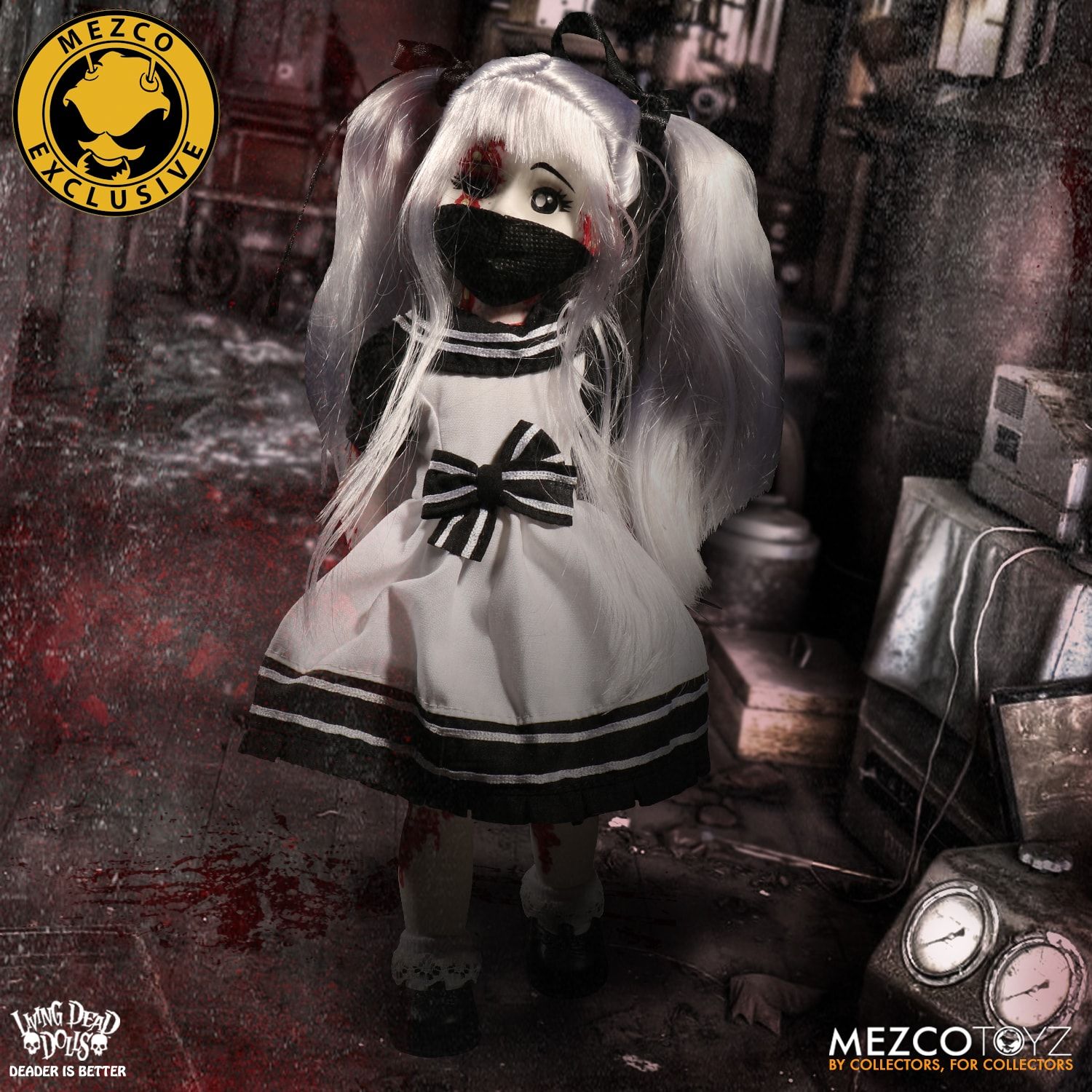 Resurrection Maggot stands 10” tall and features 5 points of articulation. She is packaged in a traditional Living Dead Dolls coffin, perfect for display.