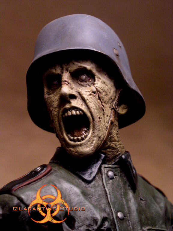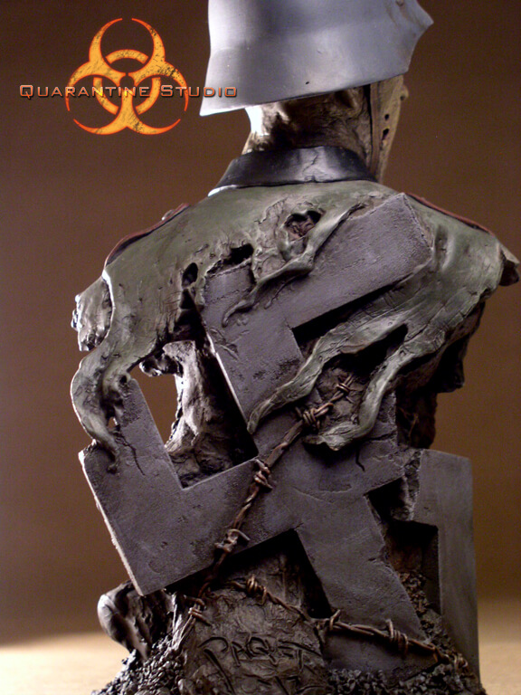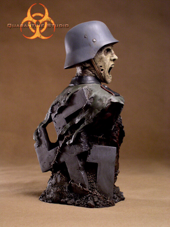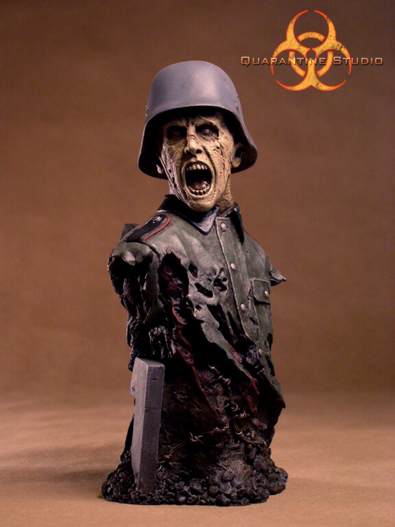 Herr Burkhart’s final war cry was cut short by an Allied sniper on the Western Front. He died among his fallen comrades, a final death rattle escaping his gaping mouth as explosions and smoke filled the air. A mysterious series of events more than half a century later have breathed life back into his rotten carcass as the first among a resurrected army soon to unleash Hell upon Earth! Herr Burkhart is the first in a series of reissued busts from Quarantine Studio, titled Return of The Reich. These 1/4-scale bust are created in nauseating detail standing 8 1/4″ tall. This item comes unpainted.