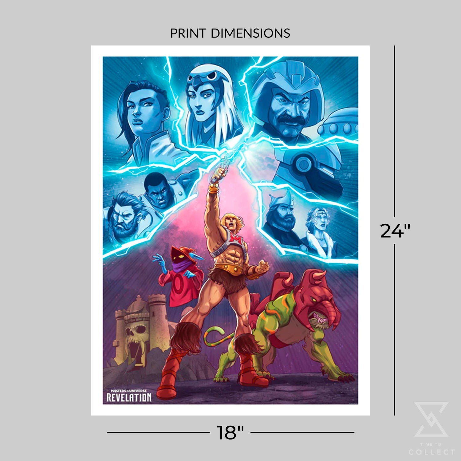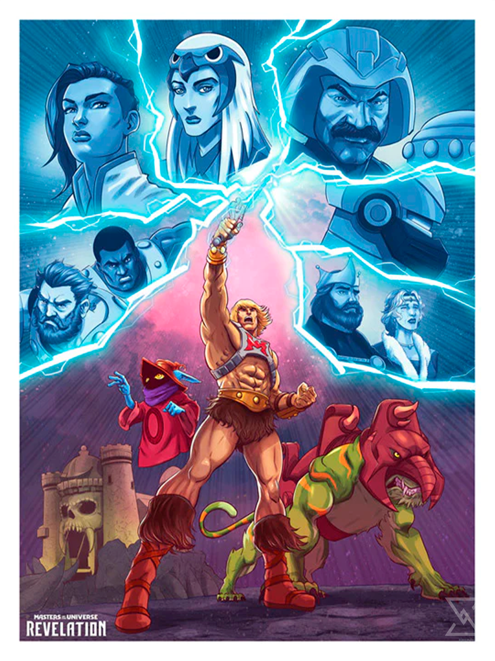 Inspired by Masters of the Universe: Revelation, join us as we celebrate Eternia’s iconic heroes in this incredible Masters of the Universe art print featuring He-Man, Battlecat, Sorceress, Teela, Orko, Man-At-Arms, and more! Each fine art giclee print is hand-numbered from a limited edition of 195 pieces and comes with a Certificate of Authenticity.