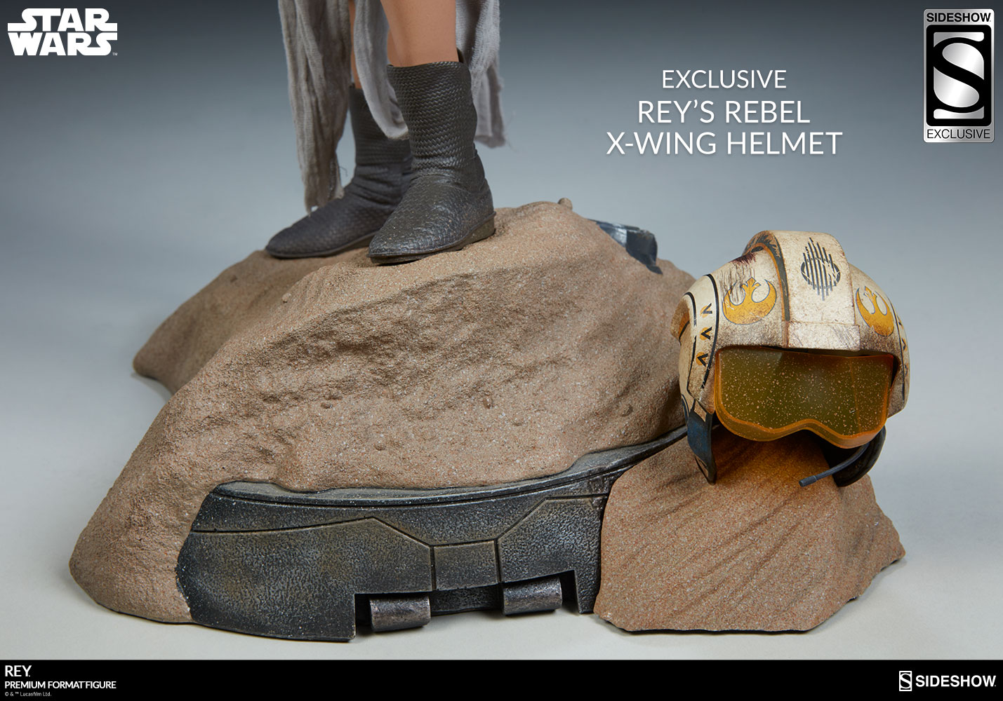 Sideshow Exclusive = Reys Rebel X-Wing helmet.