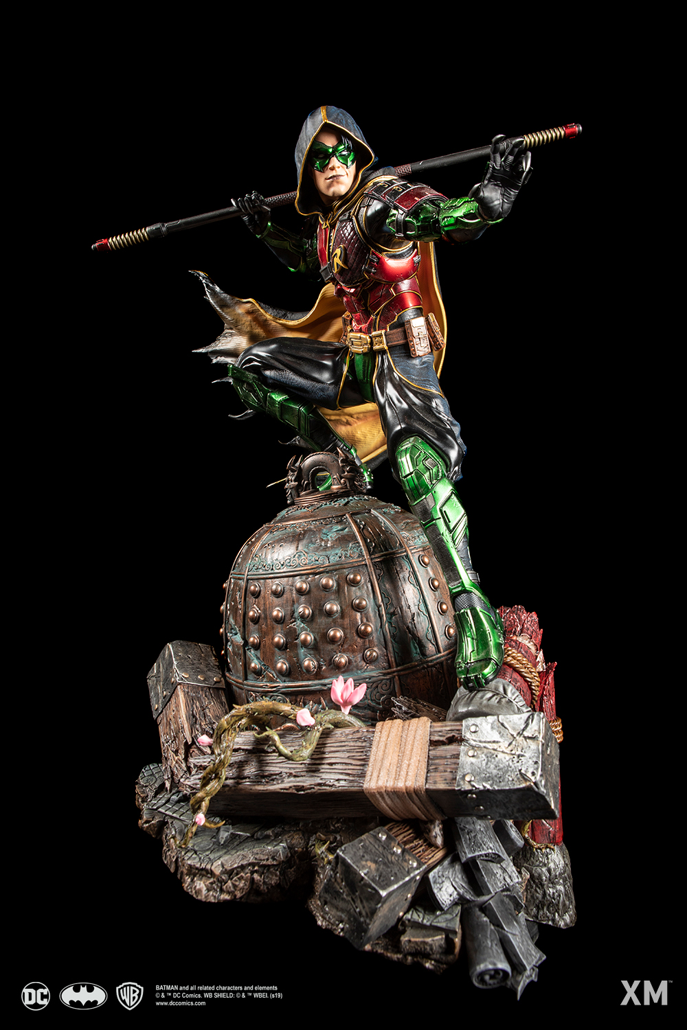 XM Studios is excited to present our next DC Premium Collectibles series statue, Robin! Immortalized in amazingly detailed 1:4 scale cold-cast porcelain. Each painstakingly handcrafted statue is individually hand-painted with the highest possible quality finish. This unique line is a result of creative collaboration between Warner Bros. Consumer Products and XM Studios to showcase the Batman universe in exotic settings as you’ve never seen. Every kid wants to be Batman, but do you have a lifetime of training? A billion-dollar fortune? The dream gets dashed pretty quickly. So OK, maybe you can’t be Batman… but that doesn’t mean you can’t be adopted by him. And just like that, Robin the Boy Wonder made the kid sidekick an icon.