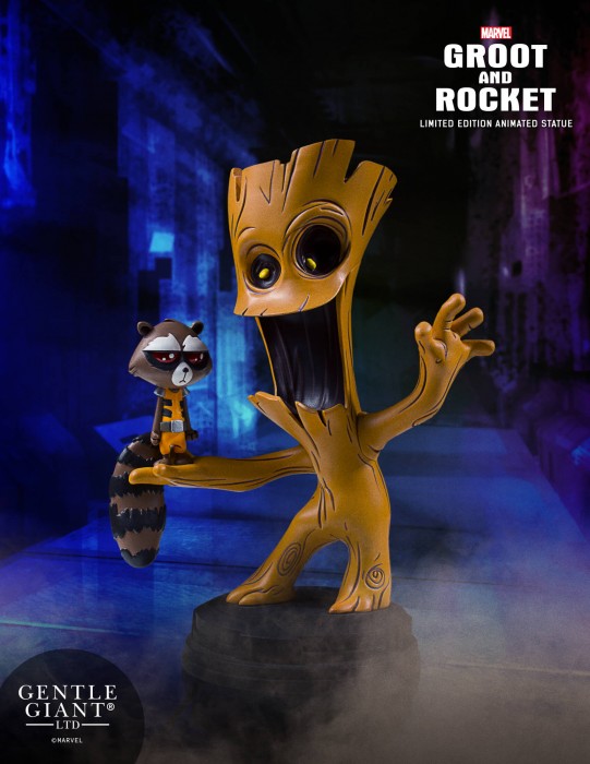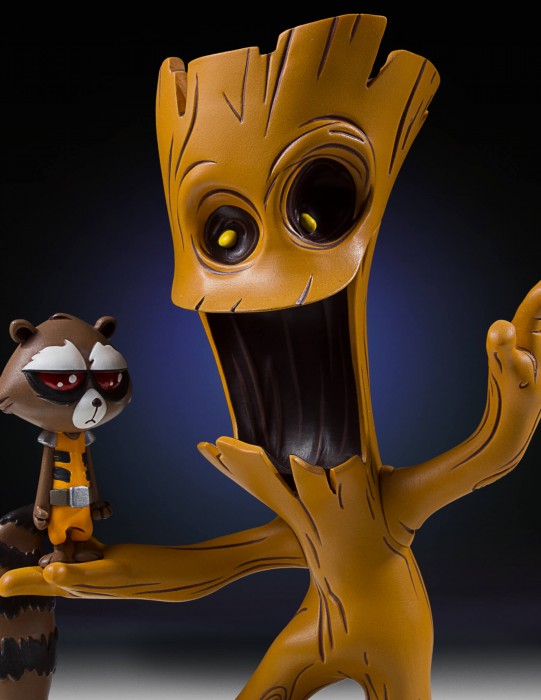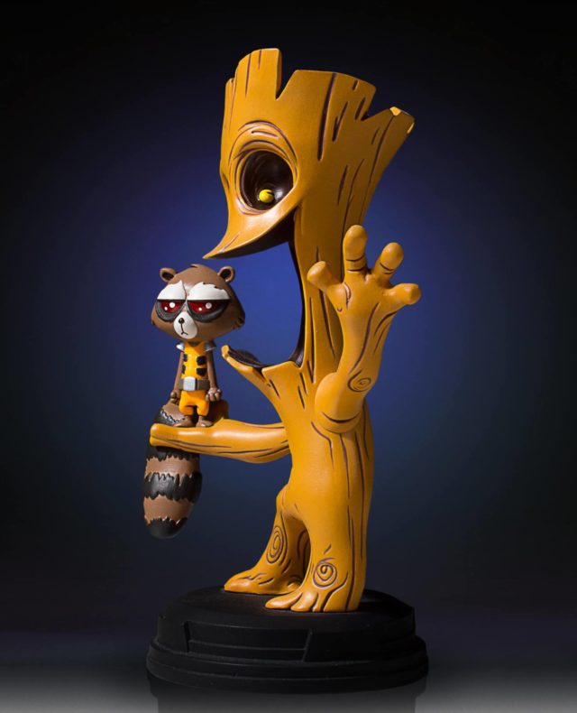 Based off the Skottie Young variant cover for “Guardians of the Galaxy Team-Up #1”, next up in the Marvel Animated statues line is two for the price of one with my favorite duo in the Marvel Cinematic Universe: Rocket Raccoon & Groot!
