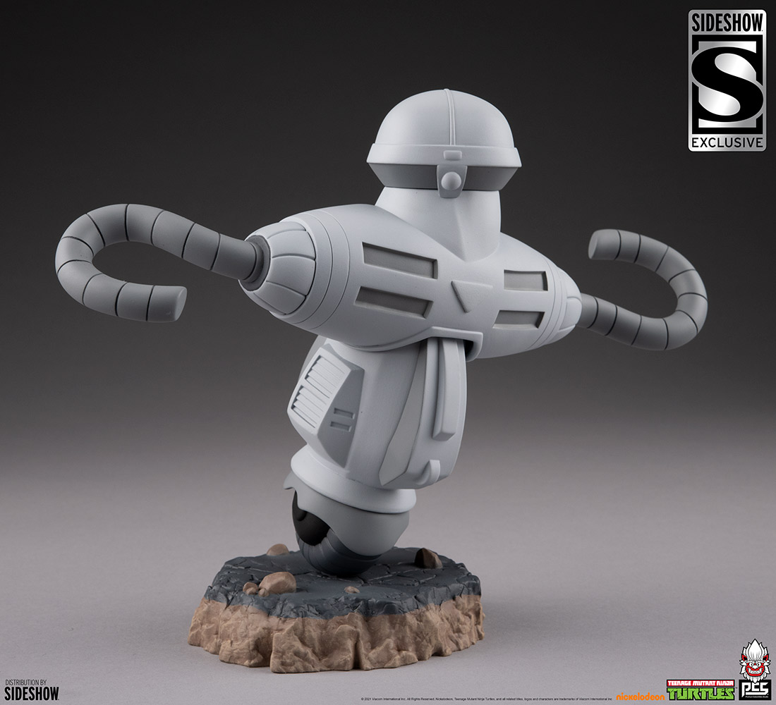 The Exclusive Edition of the Rocksteady Statue includes a proximity figure of a retrieval robot sent by Shredder, angered by his freakish henchmen after they failed to defeat the turtles in their first encounter. Display this additional element anywhere in your TMNT collection to add to the enemy’s arsenal on your shelf.
