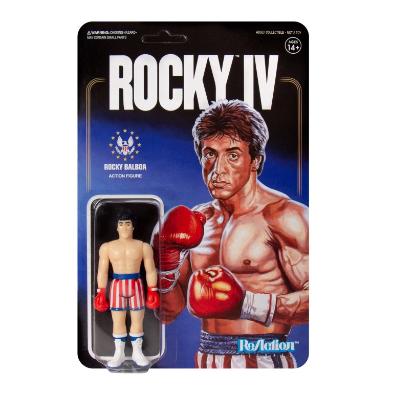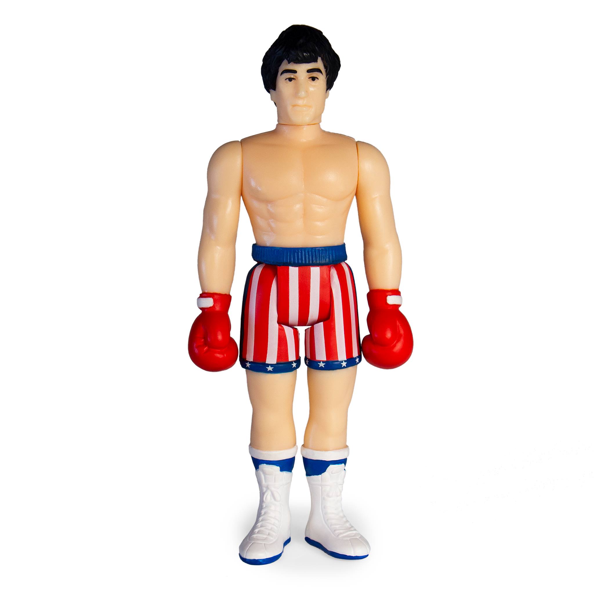In Rocky 4, Ivan Drago, an Olympic gold medalist and an amateur boxing champion from the Soviet Union, fights one of America’s greatest fighters, Apollo Creed, in an exhibition match. When the match results in the death of Creed, his close friend, Rocky Balboa, takes it upon himself to avenge Creed in the ring. 3.75′ ReAction Figure in Boxing shorts.