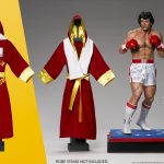 The Rocky 1:3 Scale Statue features a mixed media costume with custom tailored fabric elements giving collectors multiple configuration options. His red and white fabric shorts include the Stallion branding on the waistband, and the piece includes a red and yellow hooded Italian Stallion robe and a white fabric towel that can also be displayed on the figure. The Rocky Statue also features sculpted white boots, striped socks, and red gloves to complete his ring look. Taking a prepared stance, this statue embodies all of the action and intensity of an unforgettable cinematic icon.
