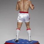 Step into the ring with Rocky Balboa, whose iconic on-screen presence has been captured in an extremely detailed and lifelike 1:3 scale collectible format. Measuring 25.7” tall, the Rocky Statue depicts the chiseled heavyweight boxer as he appeared in his first film outing, in the climactic fight against Apollo Creed. He stands on a textured black, red, and blue square base detailed with white stars to capture the feel of the boxing ring canvas. Sculpted expertly in the likeness of actor Sylvester Stallone, his portrait features handcrafted, hyper-realistic moveable eyes for an added degree of realism in any collection.