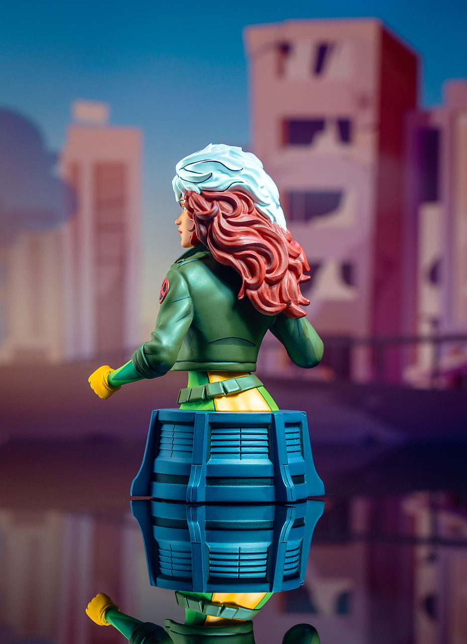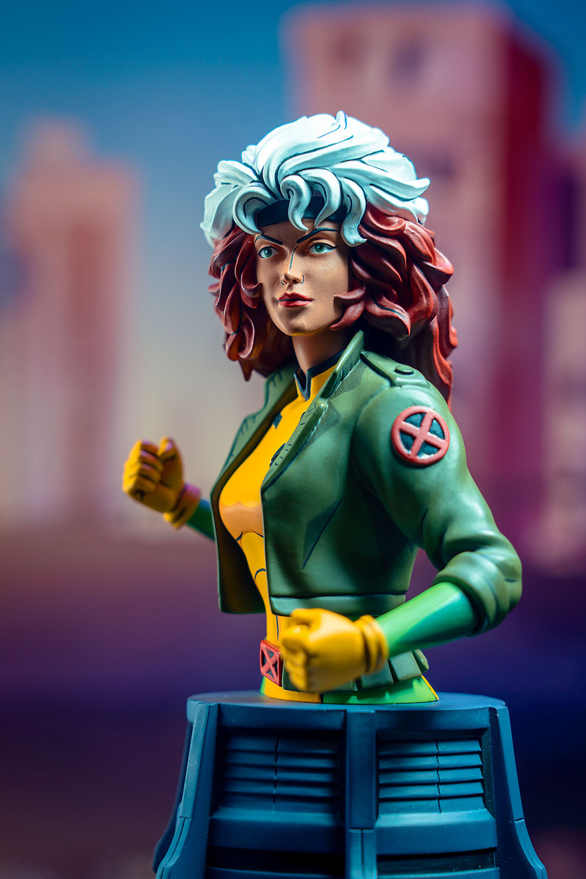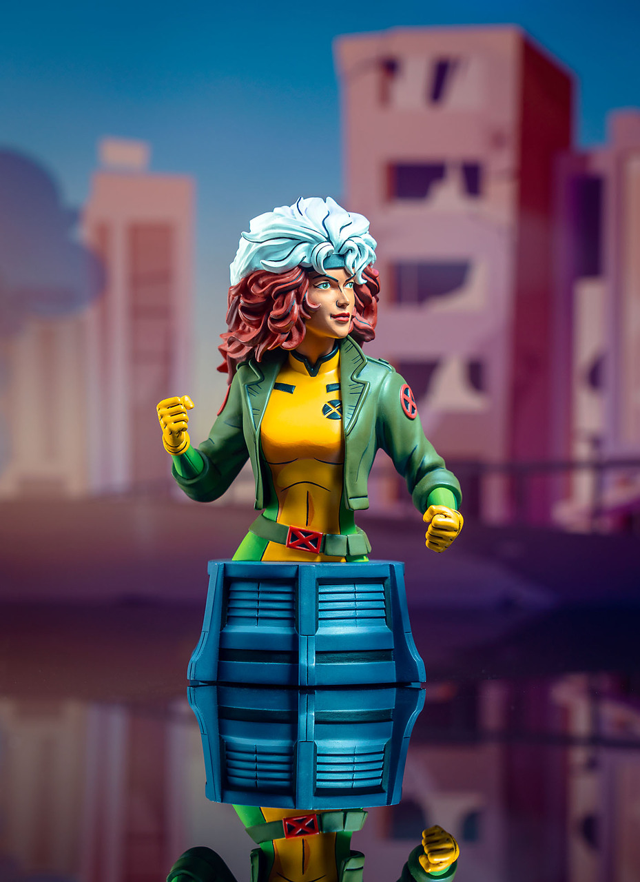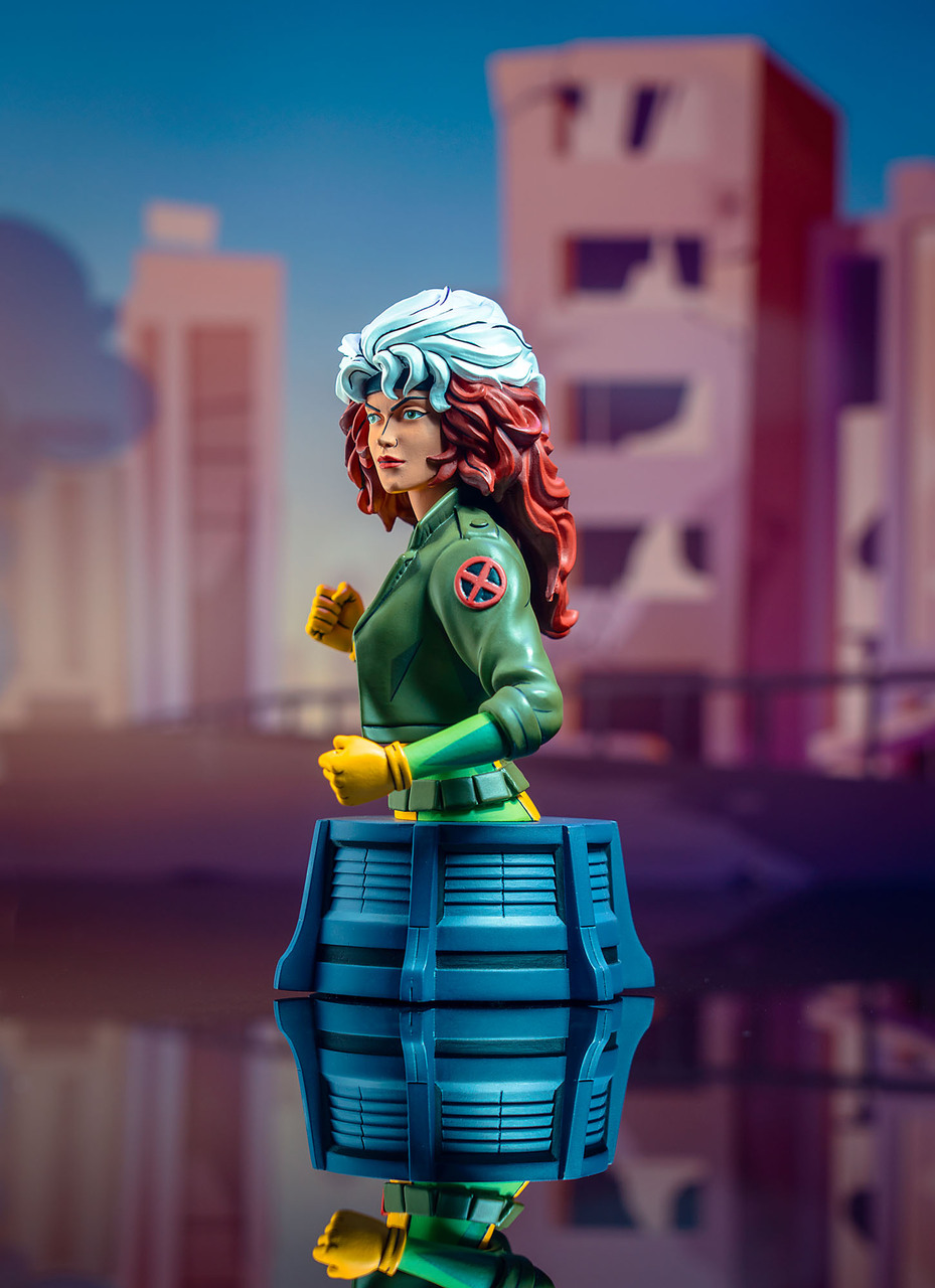 Mutant pride, shugah! Southern belle Rogue enters the fray as the newest bust based on X-Men: The Animated Series! Capturing the cartoon’s costume and colors, this approximately 6-inch tall, 1/7 scale bust sits on a grey pedestal and is in scale to the rest of the X-Men. Includes a numbered certificate of authenticity in a full-color box. Limited to 3,000 pieces. Designed by Barry Bradfield, sculpted by Paul Harding.