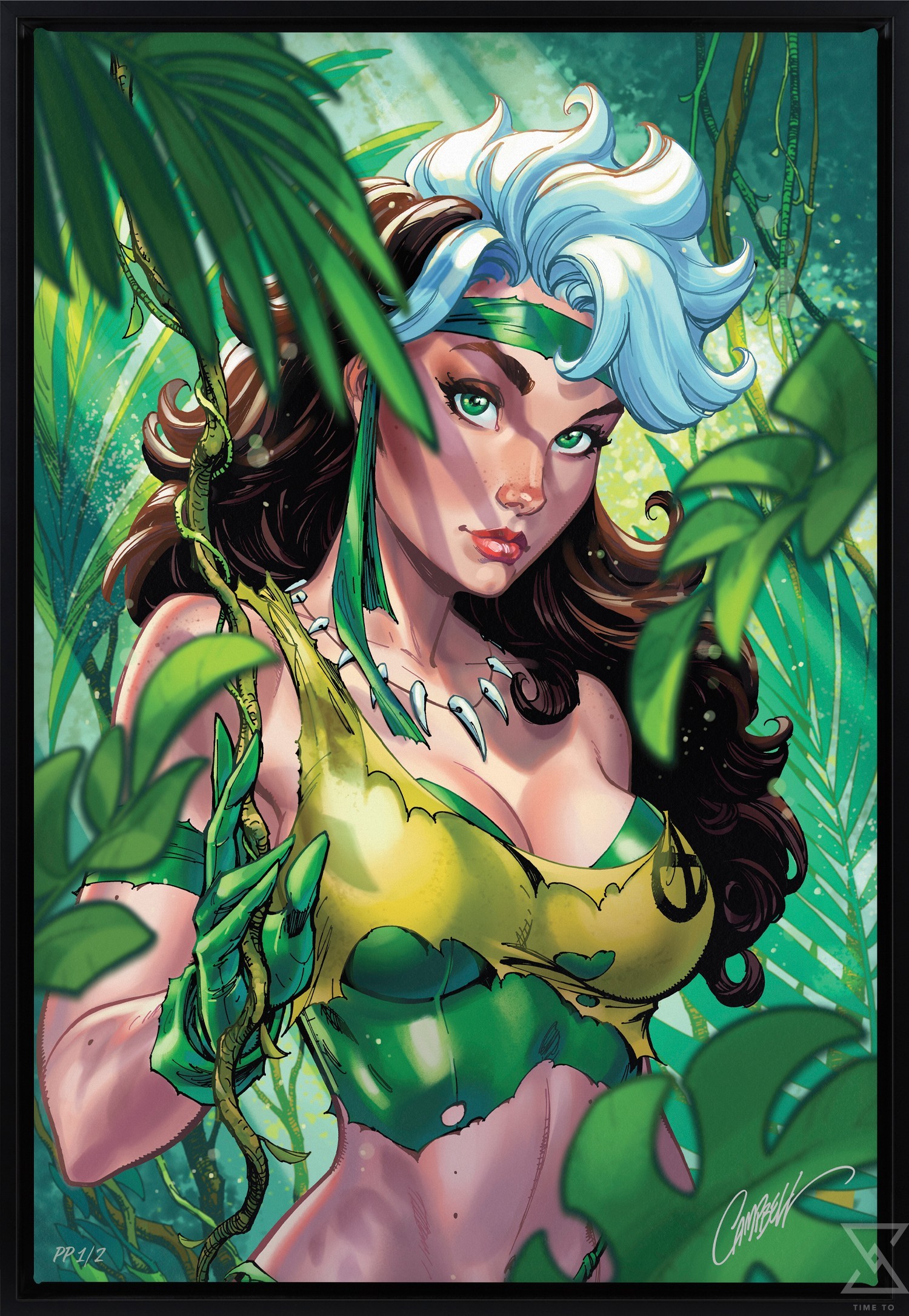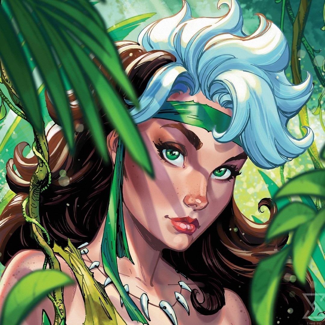 Get caught up in a wild world in this primitive portrait! Undaunted by an unfamiliar environment, Rogue makes her way slowly yet surely through overgrown fauna. As sunlight streams through the canopy, it illuminates the mutant’s stunning features — including her wide green eyes and curious expression. Do dangers or beauty untold await in this wild jungle? Only another sure step will tell…