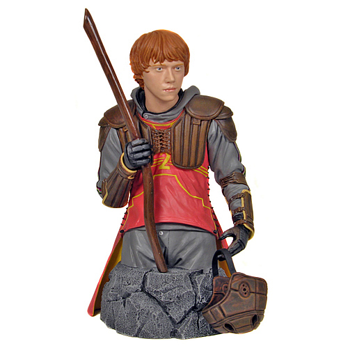 He’s going to lay the smack down! Ron joined the Gryffindor Quidditch team as Keeper to replace Oliver Wood, who had left school. Ron was clearly capable as a player but was erratic and inconsistent when faced with the pressure of an actual match. Ron is seen here, nervous yet determined, wearing his Quidditch gear and holding his helmet in his left hand. His uniform includes shoulder pads and arm guards for protection, and they’re all recreated in exacting detail in this heroic bust! This replica of Ron measures approximately 7 1/4-inches tall. Limited Edition. Includes Certificate of Authenticity.