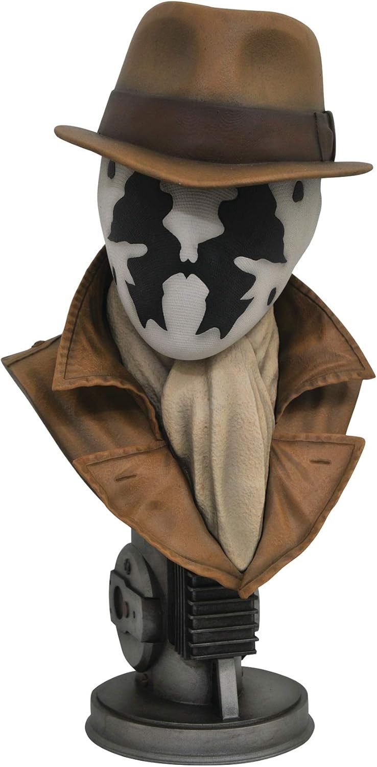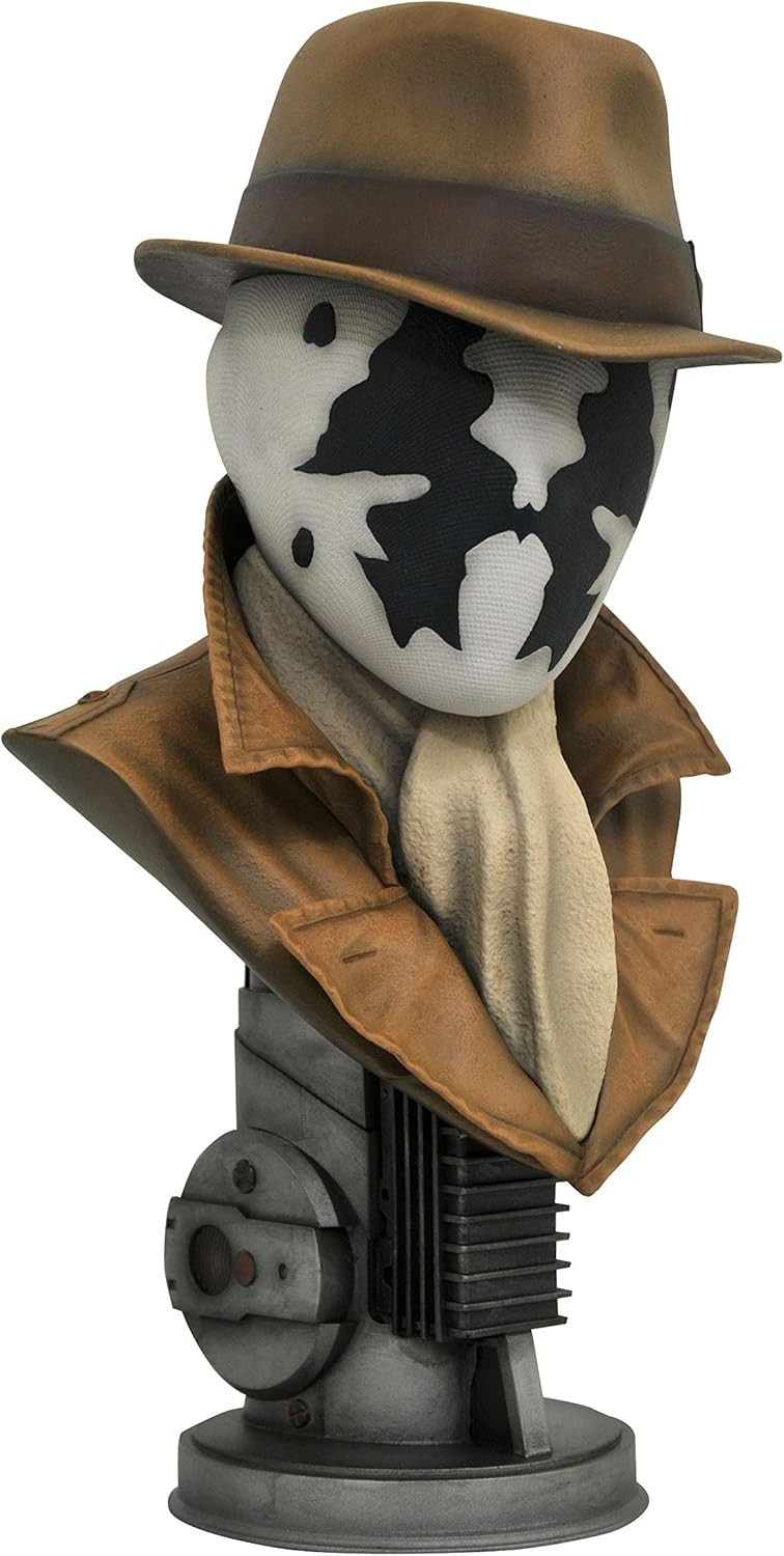 A Diamond Select Toys release! The Conspiracy is real! Diamond Select Toys and legends in three dimensions have colluded on a line of colossal half-scale busts of pop-culture icons, and up next is the ultimate whistle-blower, Rorschach! The anti-hero of the Watchmen movie is now an epic 10″ Bust, with detailed sculpting by Joe Menna. Limited to only 1, 000 pieces, It’s the ultimate Watchmen collectible! Bust comes packaged in a full-color, hand-numbered box with a numbered base and a Certificate of authenticity.