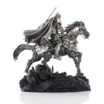 In this dramatic replica, Batman Shogun rides his war horse over the demolished effigy of his nemesis the Joker, an explicit metaphor for the triumph of good over evil. Whilst both human and equine armour reference a style and construction typical of the Edo period, their aesthetic speaks with a bat’s unmistakeable design vocabulary. Batman and his mount are exquisitely reproduced in brushed pewter, with the Joker’s crushed debris in bonded porcelain.