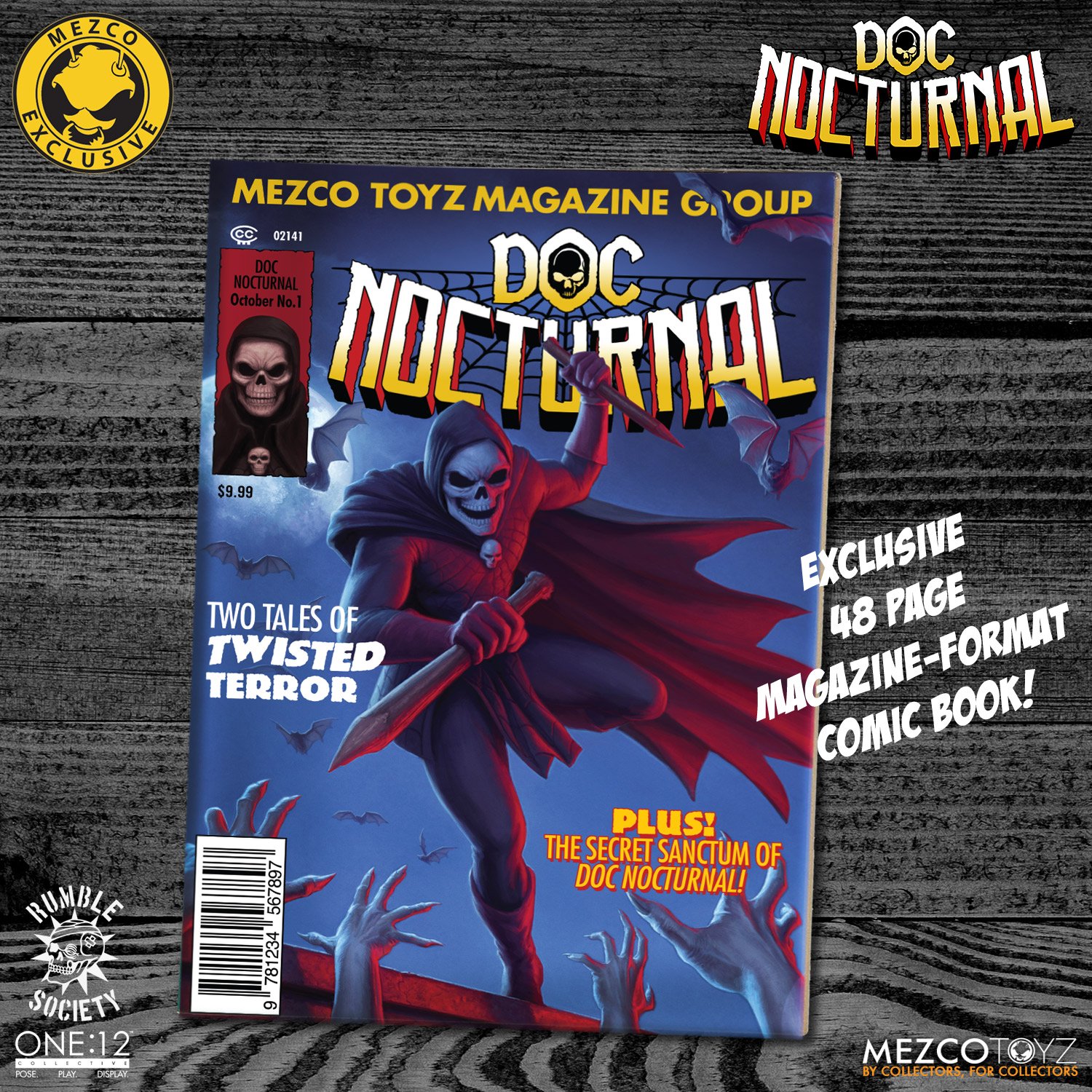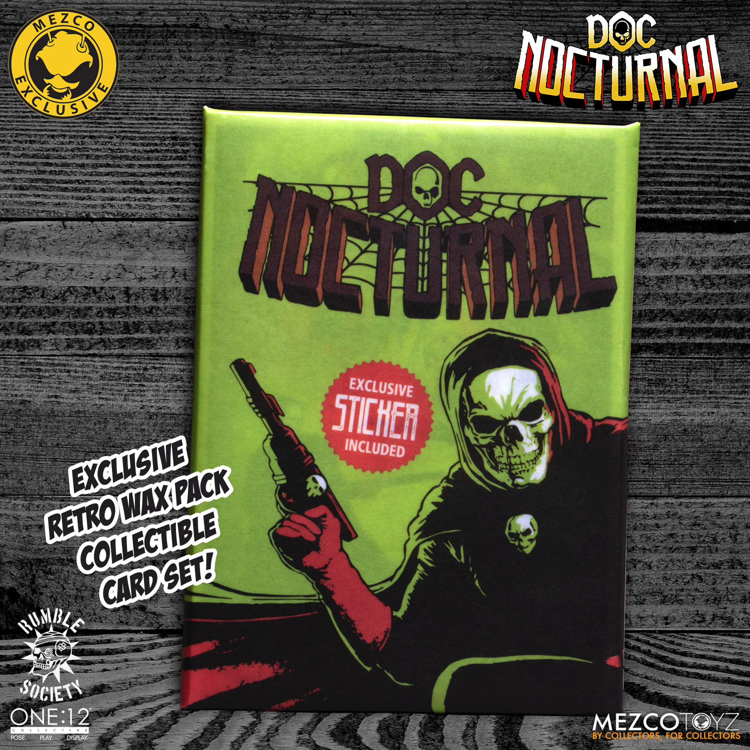 Each One:12 Collective Doc Nocturnal figure is packaged in a collector-friendly Rumble Society box with magnetic closure and art print inner cover, designed with collectors in mind.