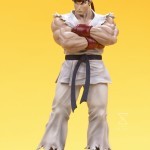 Both figures in this set are fully sculpted – Ryu, stands defiantly with his arms crossed glowering at his next opponent. His earnest expression carved into his face with a stylized look that mirrors the Street Jam artwork. His classic white gi is sculpted in lifelike detail and complemented by his bright red gloves and headband, black belt tied neatly around his waist.