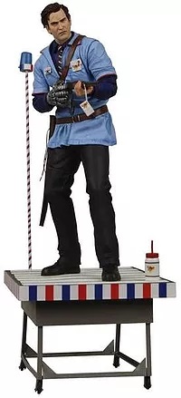 The second Ash Williams figure in the line. This marked the only 7″ release NECA has done of Ash in his S-Mart outfit (that I could find). It’s another excellent take on Bruce Campbell’s defining character. The figure includes a blue-light special cart as a base, a shotgun and a water bottle.