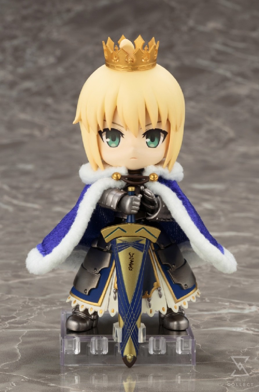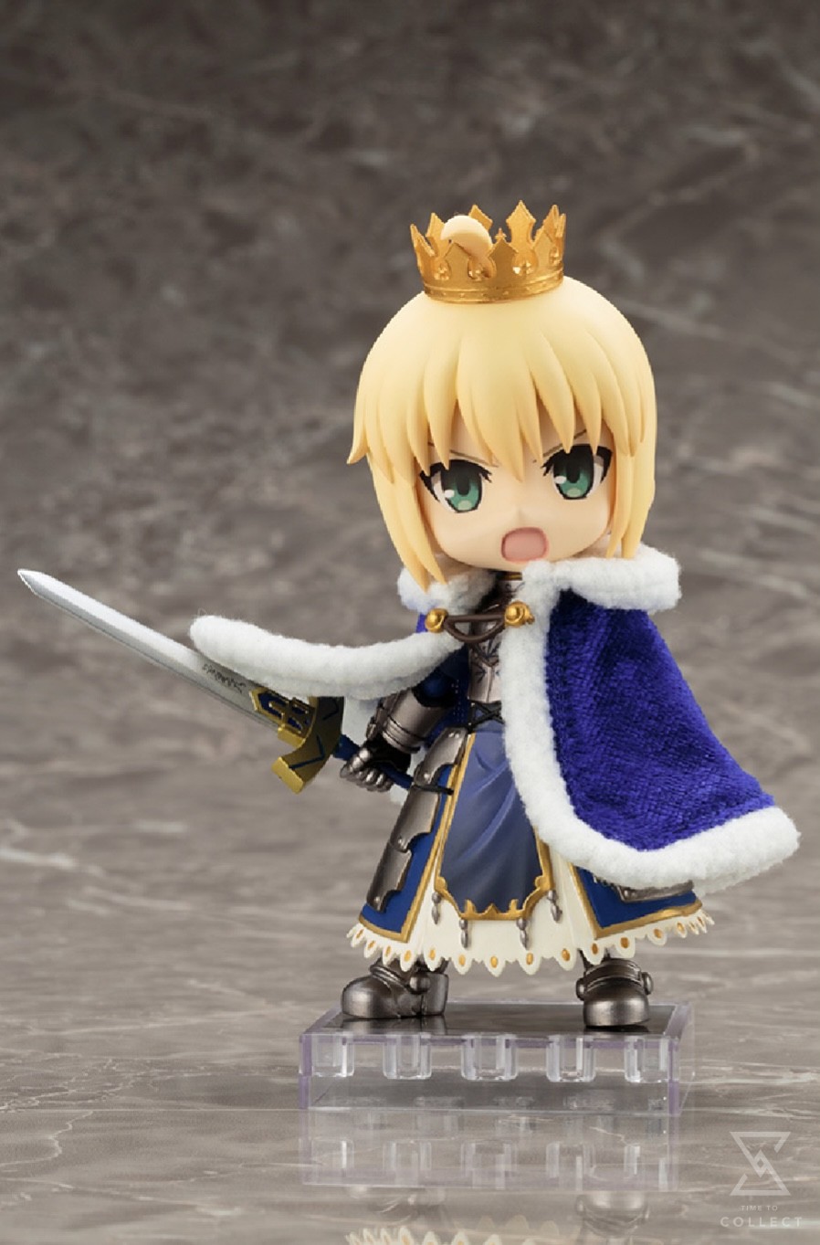 A Kotobukiya Japanese import! For the next member of the lineup of Cu-Poche figures, Kotobukiya revisits a perennial fan-favorite warrior in a whole new incarnation, Fate/Grand Order’s Saber/Altria Pendragon! Combining poseability and stability, each Cu-Poche figure features multiple points of articulation and magnets in its feet for extra stability on the included base. The brave young knight may be small and super cute in this “deformed” style, but she’s tougher than ever in her full plate armor with reinforced skirt and blue and white regalia. Saber comes with multiple interchangeable face parts so you can display her with a variety of facial expressions from smiling to angry. Of course, no version of Saber no matter how adorable would be complete without her weaponry, and so this Cu-Poche figure also comes equipped with Excalibur as well as different hands, Avalon, a crown, and a mantle for you to customize your display exactly as you like. Sculpted by Haruhi Murakami, Saber/Altria Pendragon stands just over 4 ½ inches tall and has multiple points of articulation for great posing options. Add her to your collection standing strong on her own or alongside other Fate series Cu-Poche figures and statues from Kotobukiya!