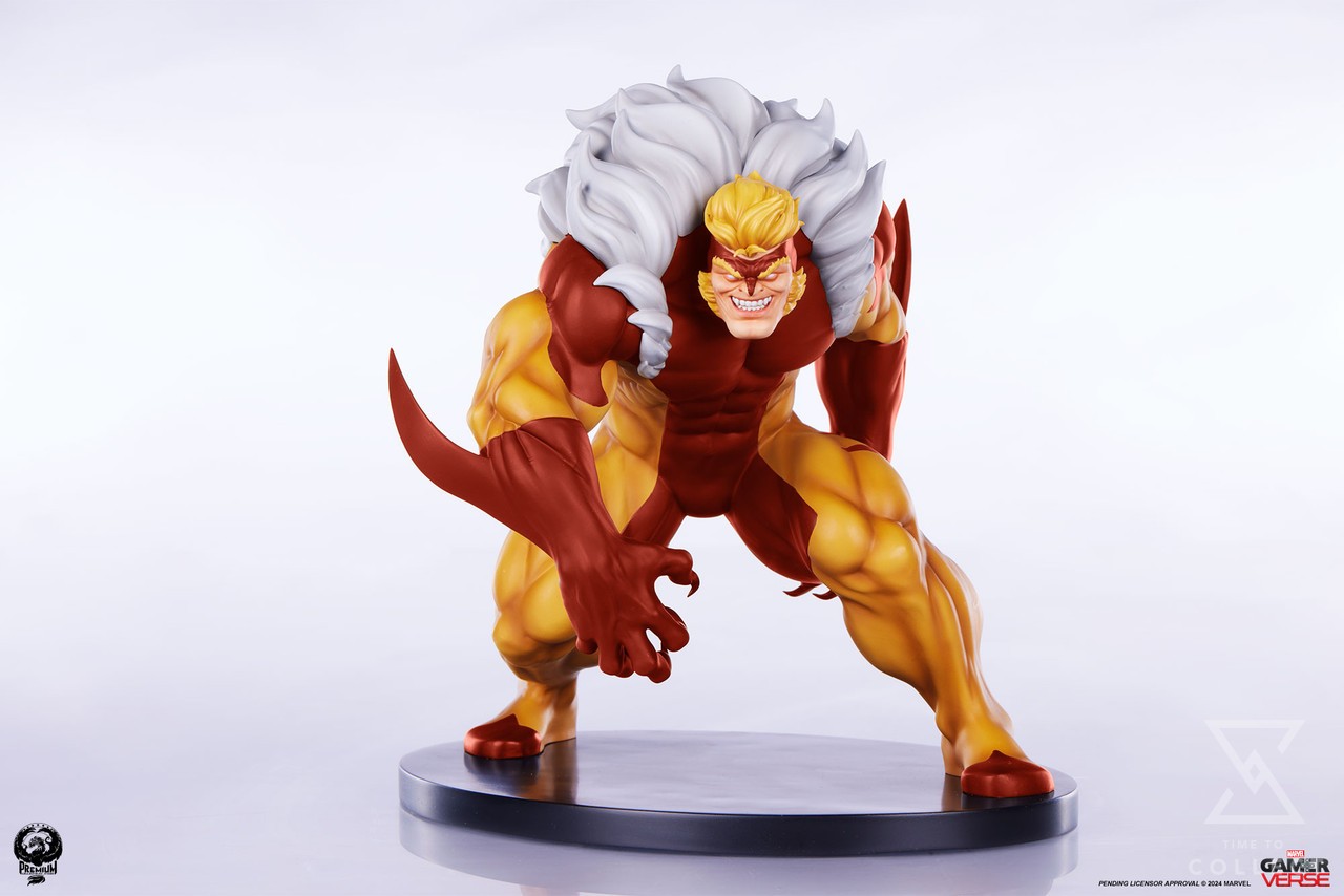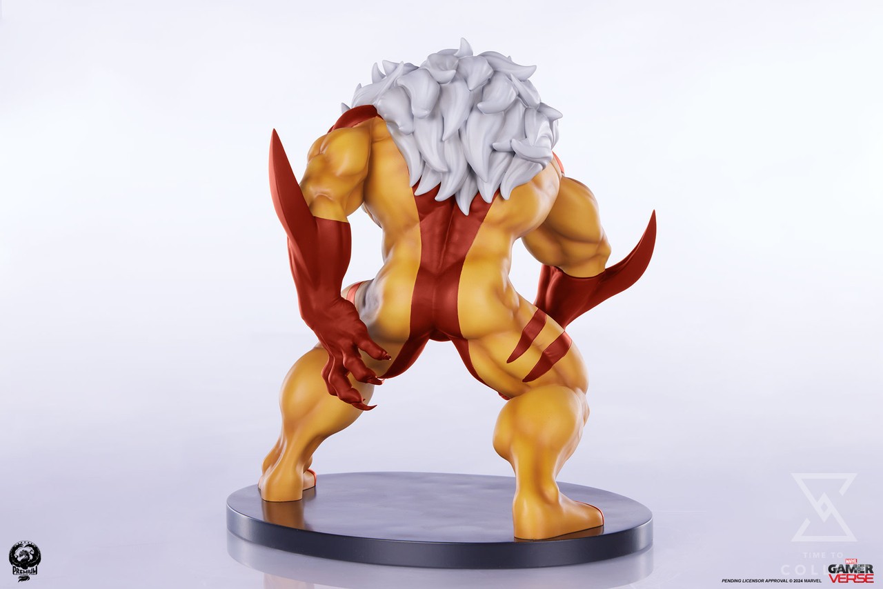 The problem child of the Weapon X program is ready to tear the competition to shreds in his iconic brown and yellow costume. This fan favorite look features a dramatic collar of white fur that frames his portrait and highlights his fiendish grin and eerie, pupiless white eyes. His blond hair and muttonchops match closely to his costume, giving him an animalistic appearance sure to disarm any adversary.