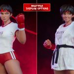 The Sakura Gym Statue measures 16.5” tall, with the fan-favorite schoolgirl brawler dressed in a detailed workout uniform in mixed media. She features a tailored fabric t-shirt, as well as a removable white fabric gi and black belt, inspired by her adoration of the legendary street fighter Ryu. Sakura Kasugano is ready for action in a confident fighting stance with sculpted red shorts, red gloves, a white leg wrap, and red sneakers.