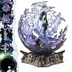 Standing at almost 19 inches tall, Satoru Gojo is ready to unleash his fearsome Domain Expansion upon his opponent. Domain Expansion is a rare and extremely powerful ability that very few jujutsu sorcerers possess. It requires a very profound understanding of their own magic and the ability to control and manipulate the surrounding environment. Satoru here, being the sorcerer prodigy that he is since a very young age, already knows that his opponent is in for a very good treat! With a sly smirk and a relaxed composure, Satoru dons his slim-fitted dark blue, high-collar jacket and his simple black blindfold. Casually casting his Domain Expansion ability, his right fingers are crossed, and his left thumb casually slipped inside his pocket, nothing can ruin this man’s day. Satoru takes a step forward on a Jujutsu Kaisen-themed base as purple magic energy slowly vibrates and gathers, forming a menacing sphere all around him. The Infinite Void is about to expand at any second!