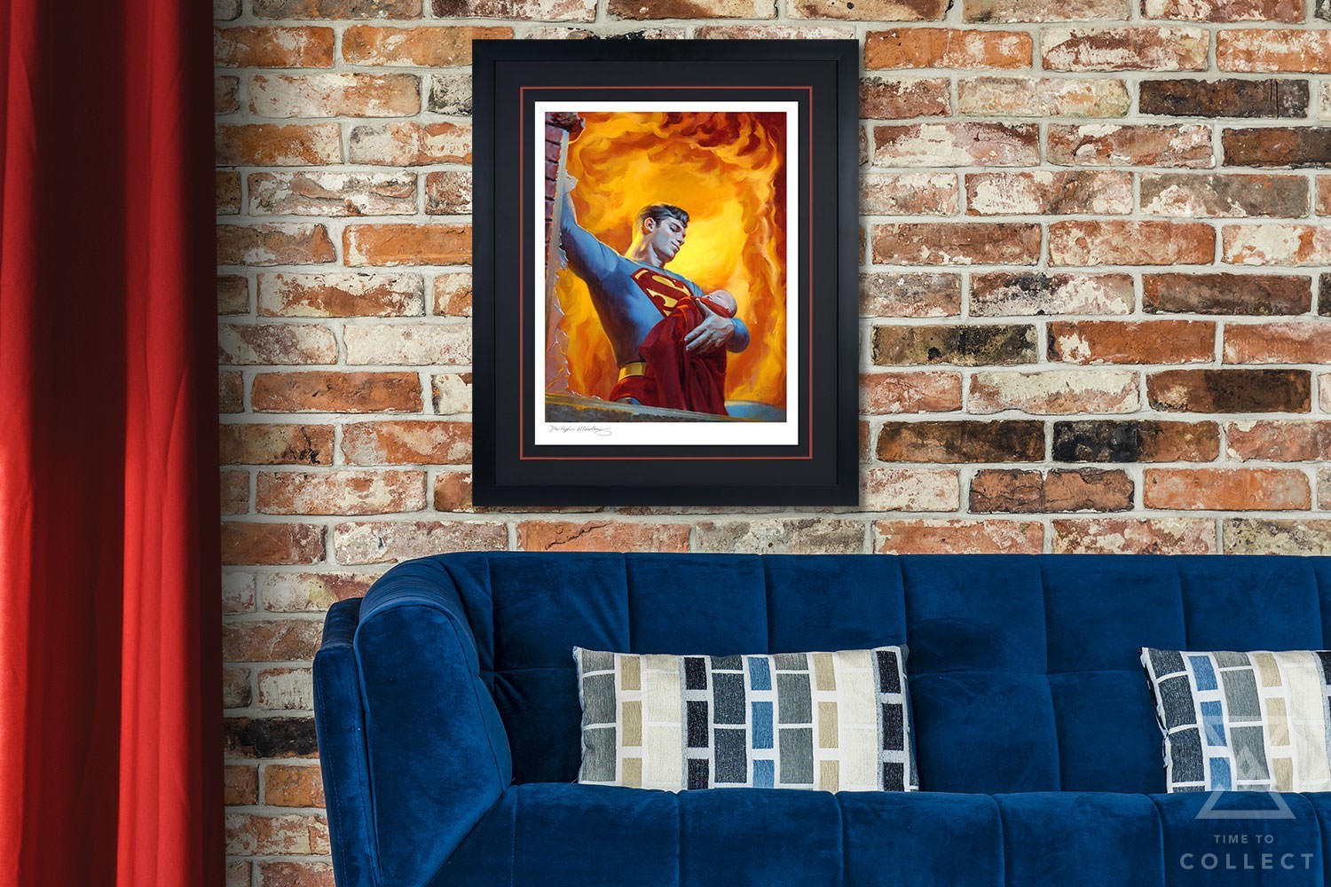 Faithfully replicated from an original oil painting inspired by a Superman story by Jon Bogdanove, this dazzling Superman artwork is now available for fans in a fine art collectible format. Each Saving Grace Fine Art Print features an authorized, automated artist signature and an embossed Seal of Authenticity as a part of the limited edition of 300 pieces. DC Comics collectors won’t want to miss their chance to bring home this fine art giclée, available unframed or in a custom framed format, by a celebrated Superman artist.