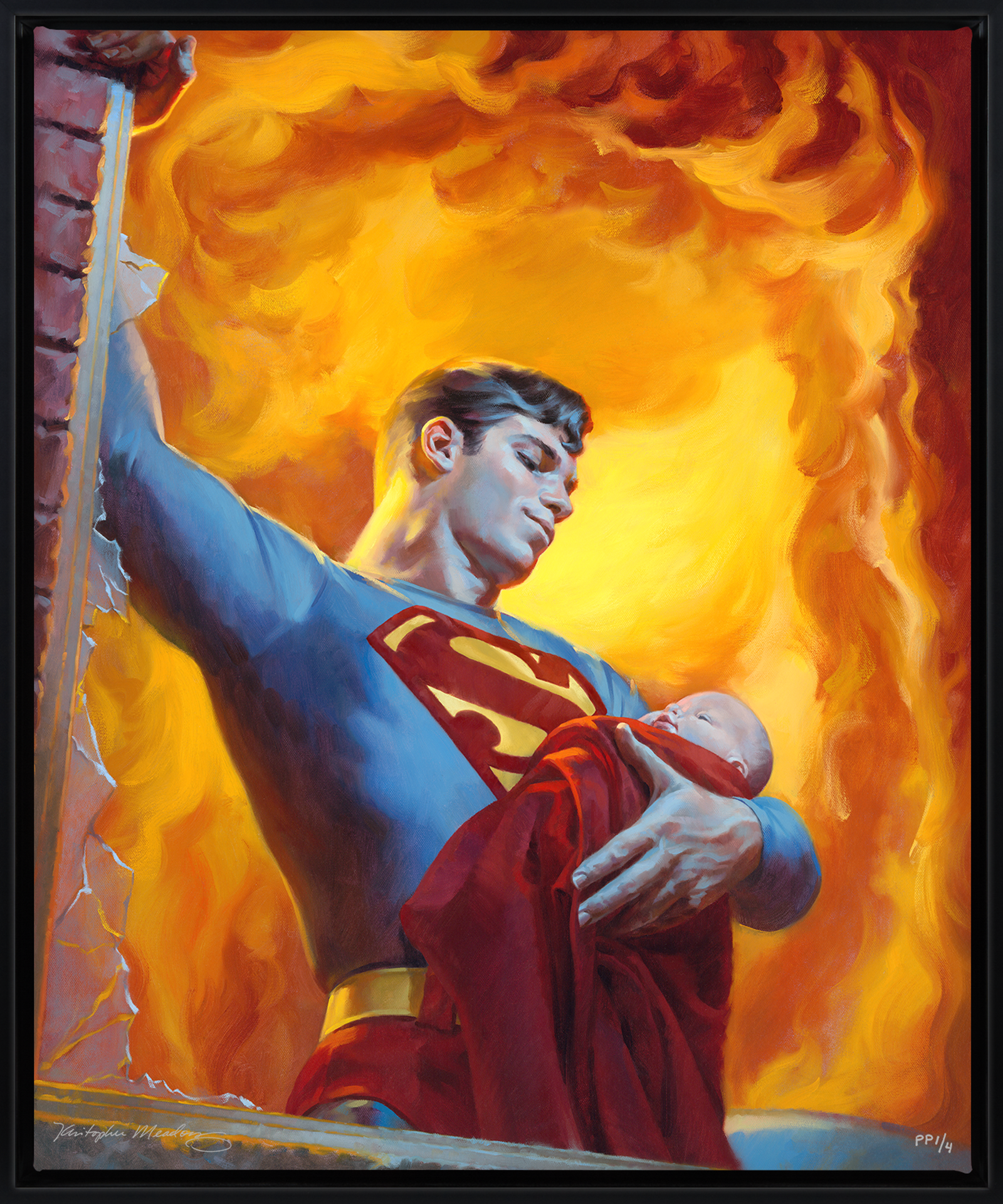 Faithfully replicated from an original oil painting inspired by a Superman story by Jon Bogdanove, this dazzling Superman artwork is now available for fans in a fine art collectible format. Each Saving Grace Fine Art Print features an authorized, automated artist signature and an embossed Seal of Authenticity as a part of the limited edition of 300 pieces. DC Comics collectors won’t want to miss their chance to bring home this fine art giclée, available unframed or in a custom framed format, by a celebrated Superman artist.