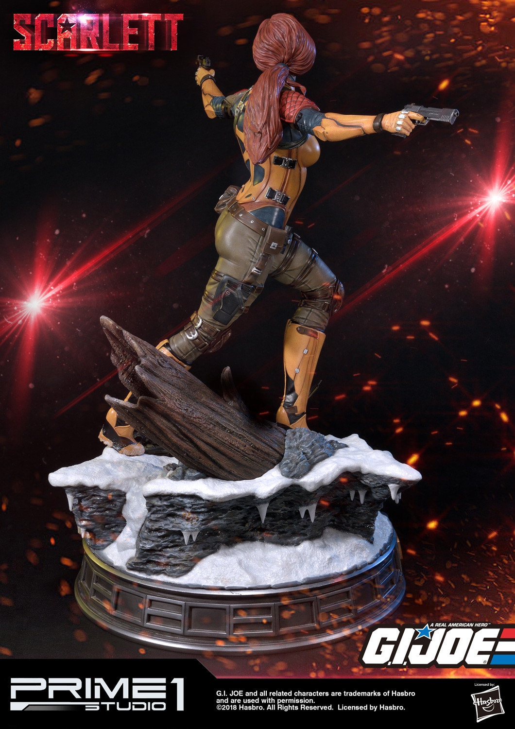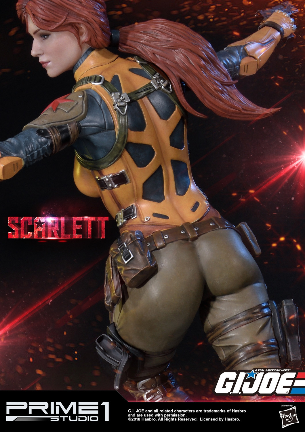 Prime 1 Studio is proud to present the 1:4 scale PMGJ-05: Scarlett from G.I. Joe. Shana O’Hara also known as Scarlett is one of the original members of the G.I. Joe Team. Her primary specialty for the team is counter intelligence. Scarlett is additionally skilled in martial arts and acrobatics. She is always portrayed as an athletically built, yet shapely, woman with a beautiful face and long red flowing hair. Although she is as adept with standard weapons as any of her comrades, her weapon of choice is the XK-1 Power Crossbow, which fires various bolts with specialized functions.