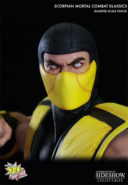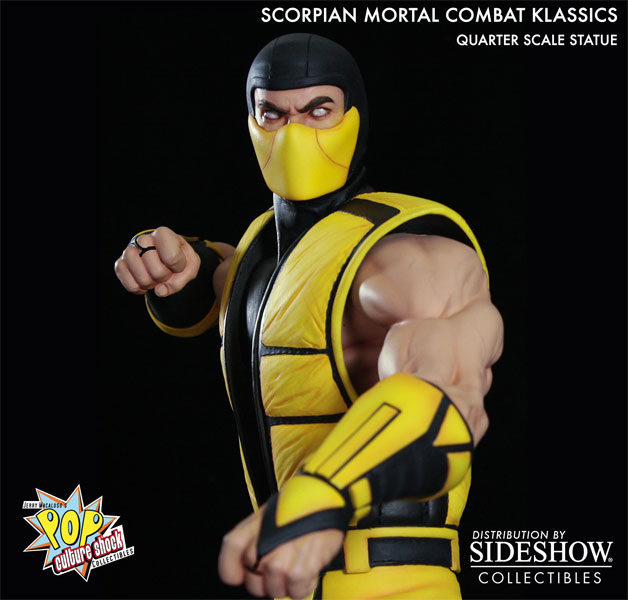 Sideshow Collectibles is proud to introduce, the Ultimate Mortal Kombat 3 SCORPION Quarter Scale statue. The first statue in Pop Culture Shock Toys’ new line based on Mortal Kombat Klassics. Scorpion is finished to the highest quality, including real fabric parts and comes with a signed Certificate of Authenticity. This extremely limited collectible, which measures 19 inches tall, appears to have stepped right out of the game and will having you saying, ‘vengeance will be mine!’