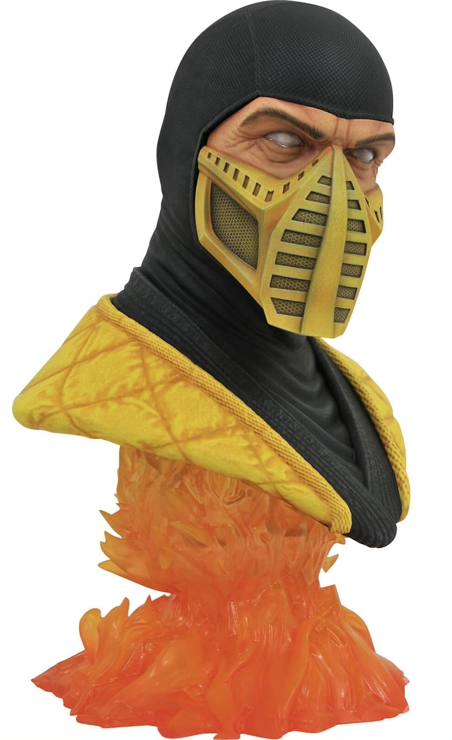 A Diamond Select Toys release! Fatality! This killer bust of Scorpion is the next release in the Legends in 3D line of half-scale busts! Measuring approximately 10 inches tall, and inspired by his earliest video game appearances, the bust features detailed sculpting and paint applications, and is limited to only 1000 pieces. Packaged with a certificate of authenticity in a hand-numbered, full-color box. Designed by Joe Allard, sculpted by Salvador Gomes.