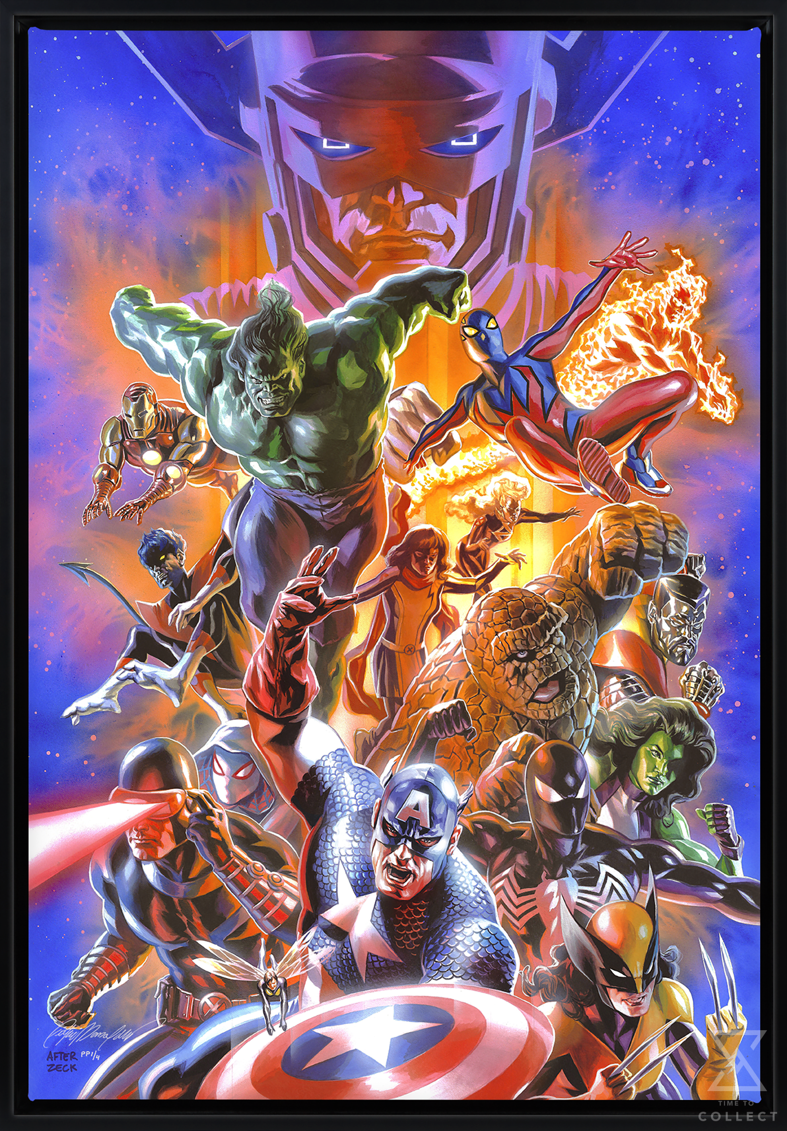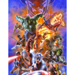 It’s a cosmic clash at the edge of the universe! Marvel heroes both new and old leap into action as they are pitted against one another in an all-out battle designed by the mysterious Beyonder. They’ll face old foes and familiar friends as they fight their way through the patchwork planet known as Battleworld. This action-packed illustration includes foundational Marvel heroes like the Human Torch, Iron Man, Hulk, Captain America, Cyclops, and more alongside newcomers and legacy heroes like Ms. Marvel, Spider-Boy, and Wolverine.
