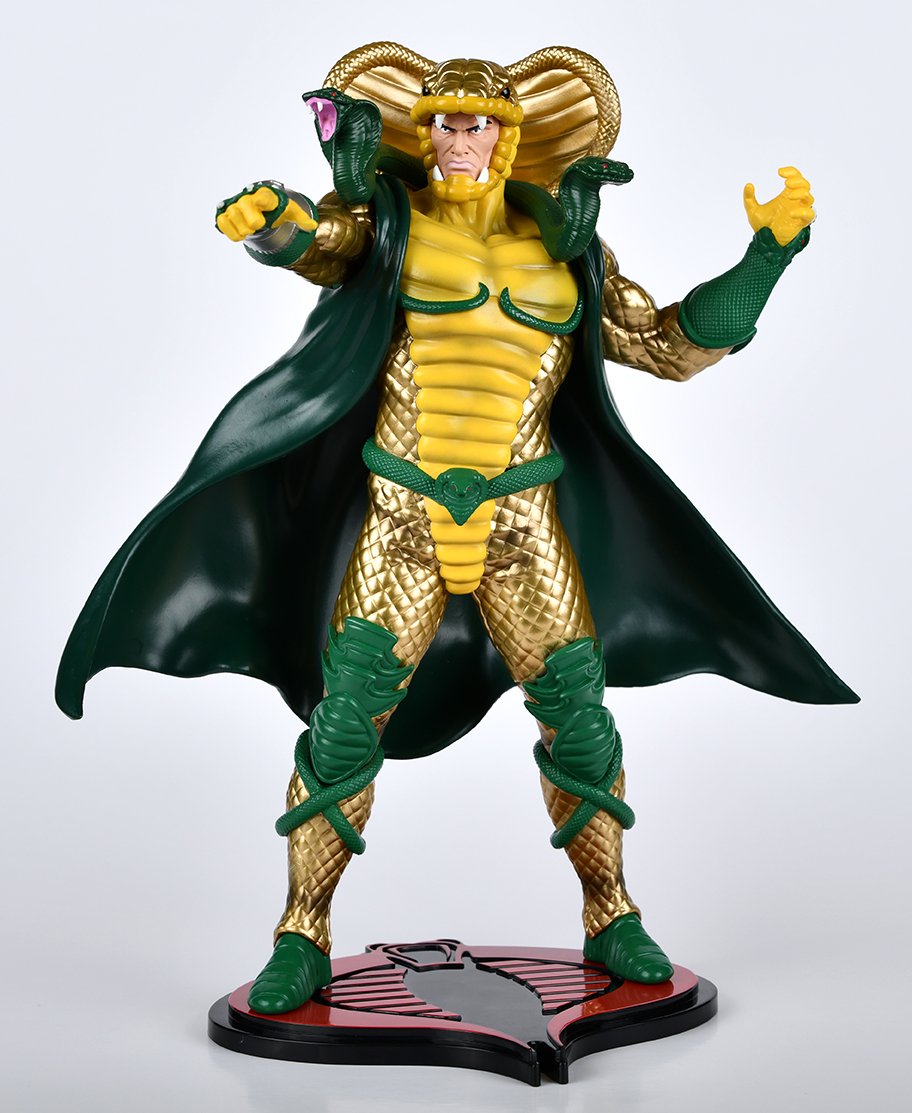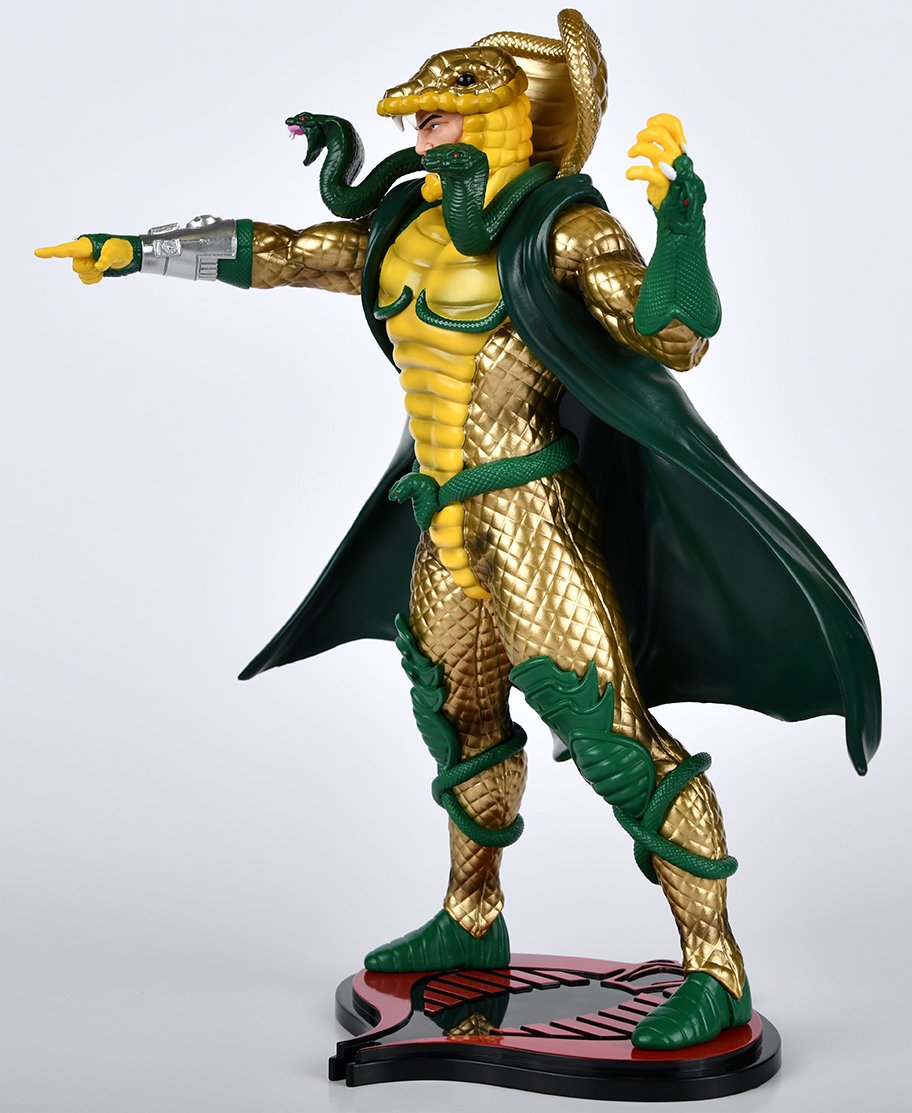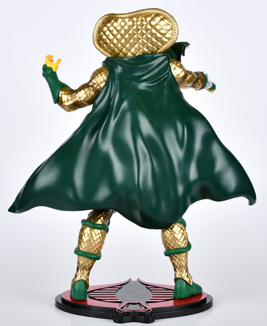The Serpentor statue stands over 10 inches tall and features an incredibly detailed sculpt and paint application. This spectacular collectible comes in a retro styled window box perfect for display.