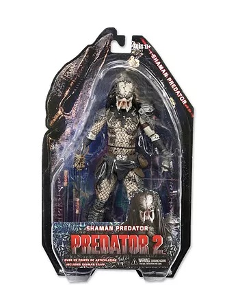 Predator 2, the action-packed sequel to the original movie, moved the hunt to Los Angeles and revealed a Lost Tribe of alien hunters! The 7″ scale action figures in Series 4 feature improved articulation — over 25 points in all, including double knee joints and ball jointed hips. They’re incredibly detailed, and entirely accurate to the movie design. Series 4 includes the City Hunter, Shaman, and Boar Predator, all with character specific accessories.