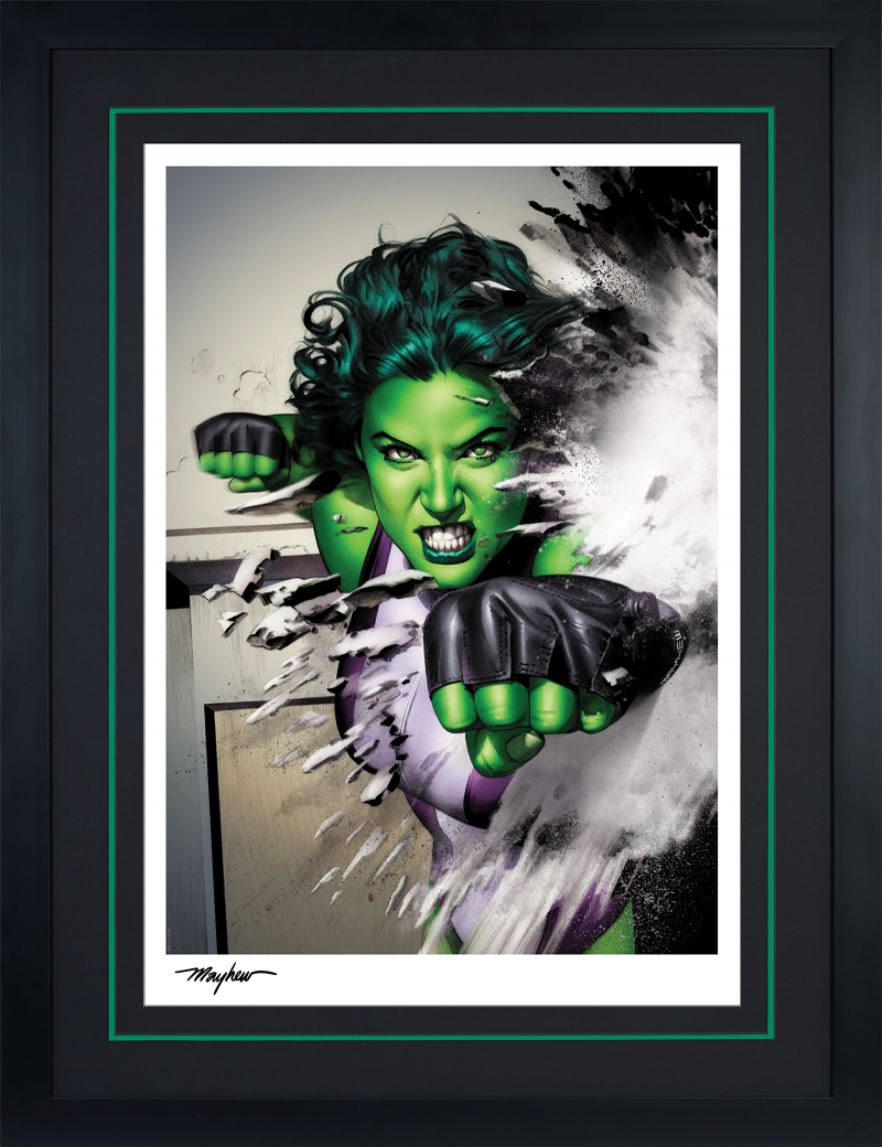 Punch up your Marvel collection and bring home the She-Hulk Fine Art Print by Mike Mayhew today!