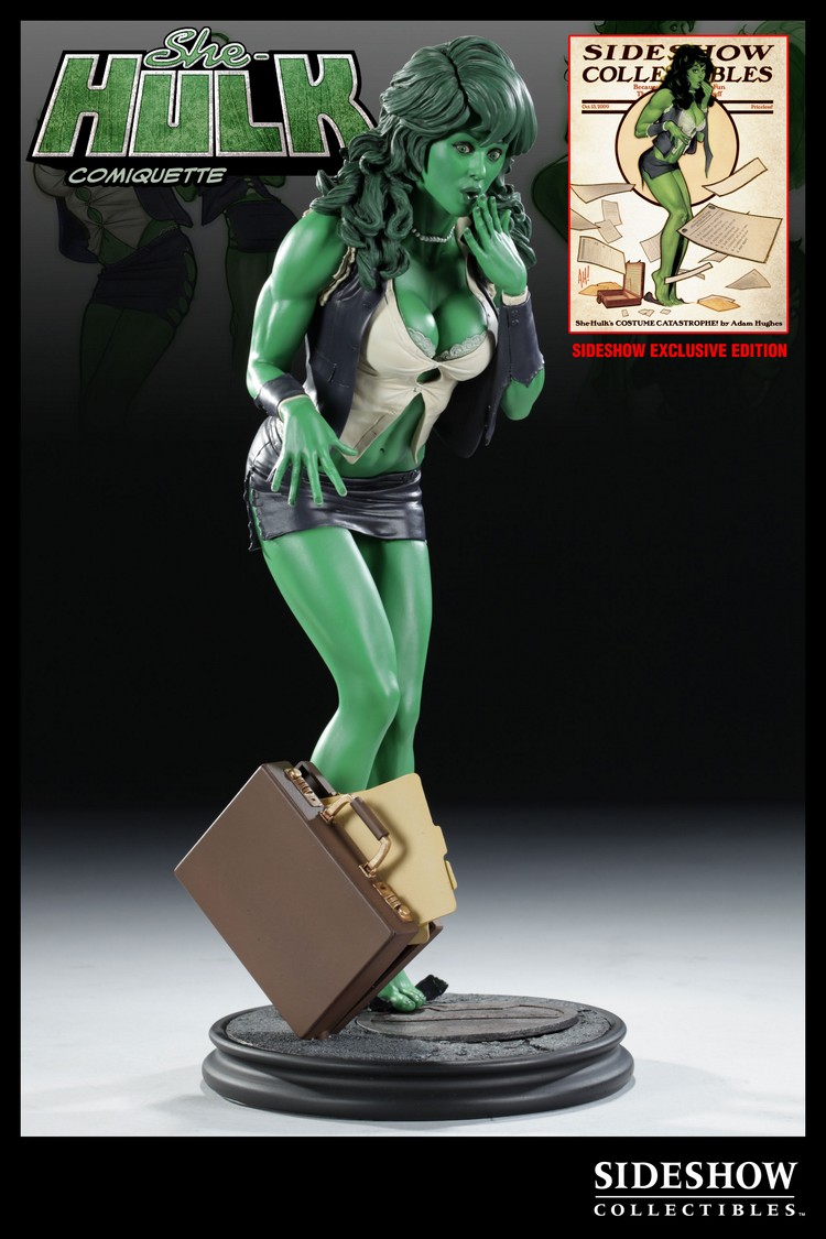 Sideshow Collectibles, Marvel Comics and Adam Hughes are proud to present the She-Hulk Comiquette, the very latest in Marvel Collectibles. Cast in high-quality polystone, this sculpture is taken directly from concepts and designs by famed comic book artist Adam Hughes, whose critically acclaimed realistic illustration meets pin-up style art has made him one of the industry’s most sought after artists and a perennial fan favorite. Each piece is individually painted and finished to exacting standards, each with its own unique quality and detail that is the trademark of a handcrafted Sideshow Collectibles product. The She-Hulk Comiquette is a fantastic addition to any display, a must-have for true Marvel fans.