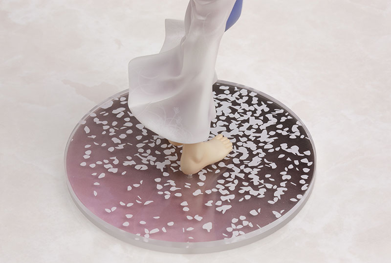 Shiki’s beautiful white kimono with detailed decoration flows gracefully around her as she spins, its intricate sculpt appearing just like real clothing and imbuing the presentation with a powerful element of motion. The paranormal investigator looks serene as she goes for the kill, her lips barely open and her eyes on her soon to be dispatched opponent. Sculpted by Tatsuya Hattori, Shiki stands 8 inches tall (1/8 scale) on a specially designed base that completes the theme of the statue.