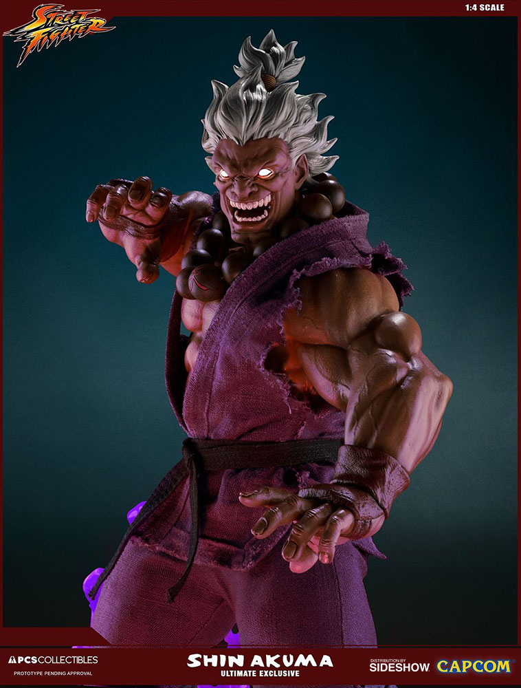 The 10th Anniversary Shin Akuma Ultimate Exclusive 1:4 Mixed Media Statue is the pinnacle of Street Fighter collectibles. This exclusive piece comes with more swap-out pieces than any Pop Culture Shock Collectible before it.