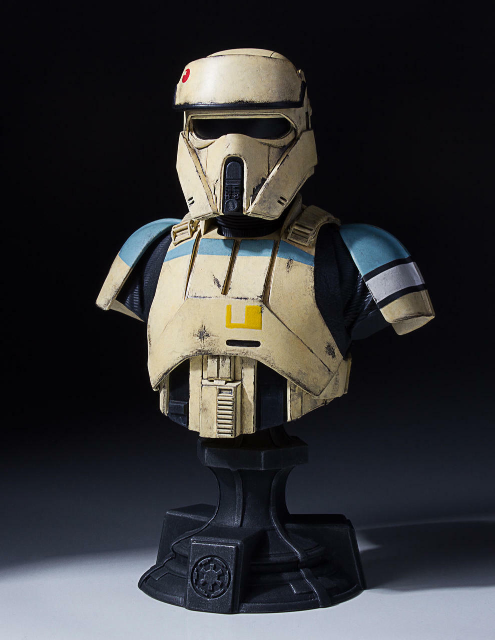 From Rogue One: A Star Wars Story; comes Gentle Giant LTD Shoretooper mini bust. Shoretroopers are armored specialty stormtroopers who patrol the beaches of the secret Imperial data storage facility on the planet Scarif. These well-trained, specialist troopers are at the ready to defend against the always imminent Rebel incursions. Shoretrooper squad leaders are identified by the blue stripe across their chest armor and shoulder pauldron. The Gentle Giant Ltd. 1:6 scale Shoretrooper classic mini bust combines the timeless aesthetics of sculpture from Greek and Roman antiquity, with characters from the ongoing Star Wars saga. Each limited edition, hand-painted, polyresin classic bust comes individually numbered and is paired with a matching certificate of authenticity. May the Force be with you!