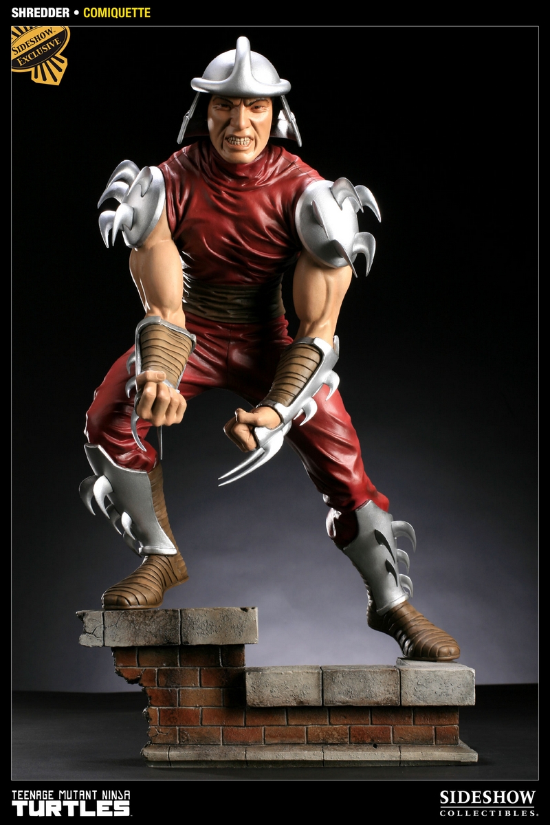 Capturing the Teenage Mutant Ninja Turtles’ greatest foe, the Shredder Comiquette presents the vengeful leader of the Foot Clan in stunning detail. Each piece is individually painted and finished with its own unique quality and detail that is the trademark of a handcrafted Sideshow Collectibles product. Crafted in 1:5 scale and complete with switch-out shadow and human masked portraits, the Shredder Comiquette is the perfect addition to any display, a must-have complement to any TMNT collection.
